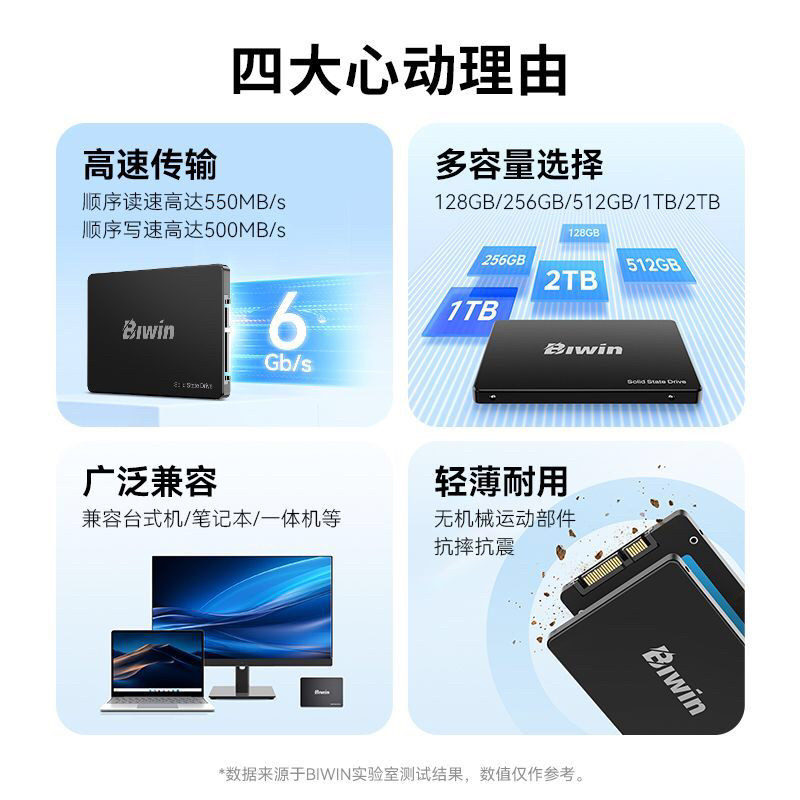 佰维M100 256G/512G固态硬盘SATA台式机笔记本高速SSD三年稳保修