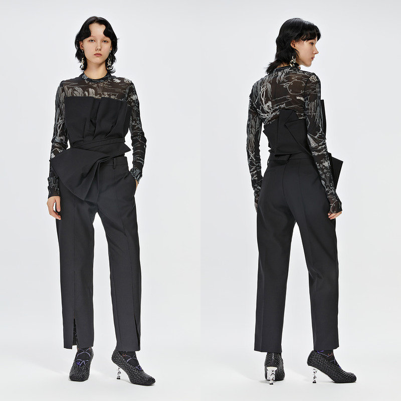 JNBY/江南布衣折扣秋冬西装裤女九分裤脚口开叉直筒裤气质通勤