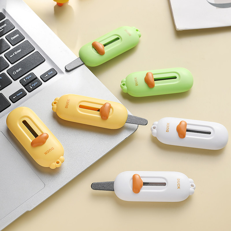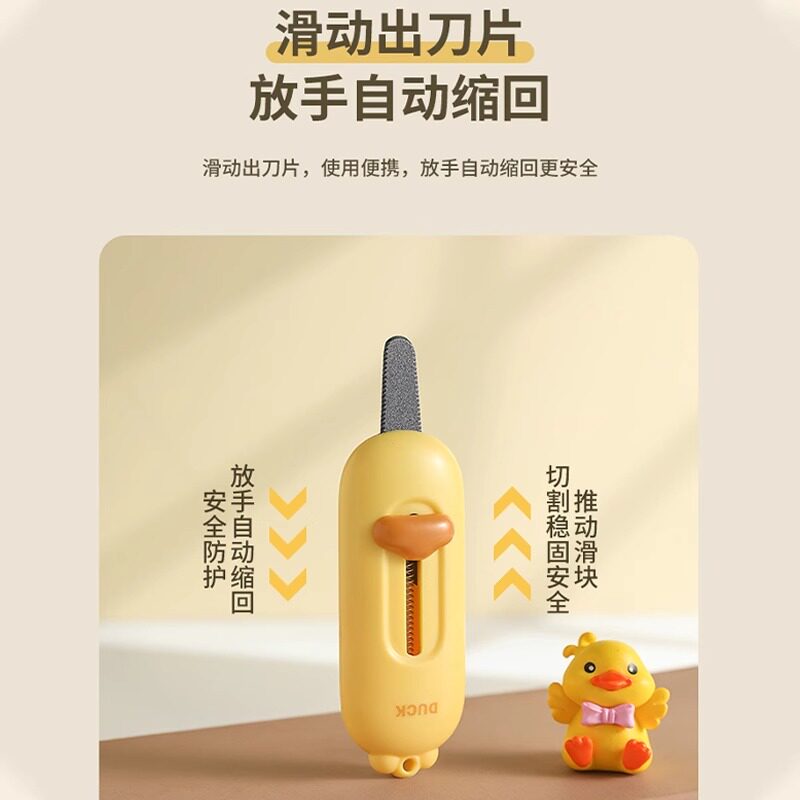 快递拆箱刀2024新款小黄鸭磁吸防粘美工刀随身便携拆包裹自动回弹