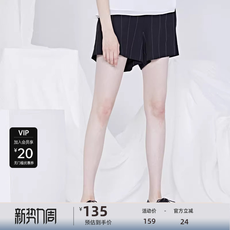【sdeer奥莱】圣迪奥女装复古休闲撞色条纹阔腿高腰短裤S20260904