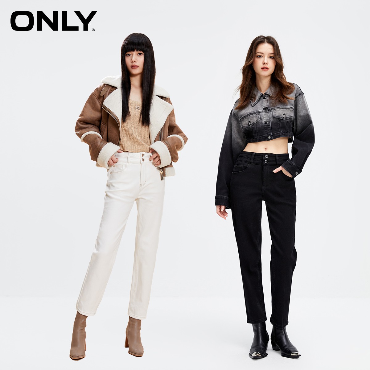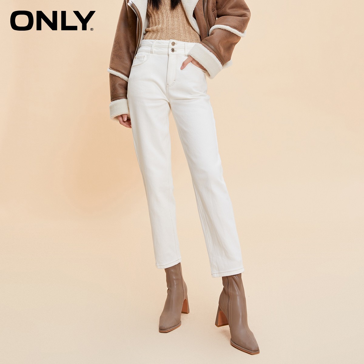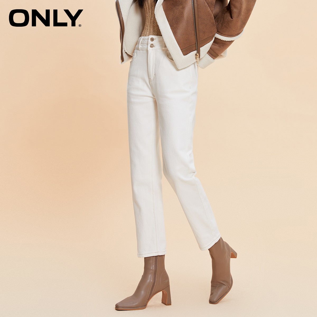 【ONLY奥莱】秋冬新款加绒保暖高腰显瘦小脚九分牛仔裤女