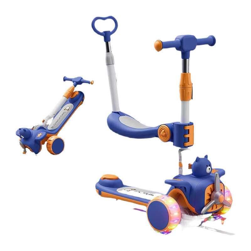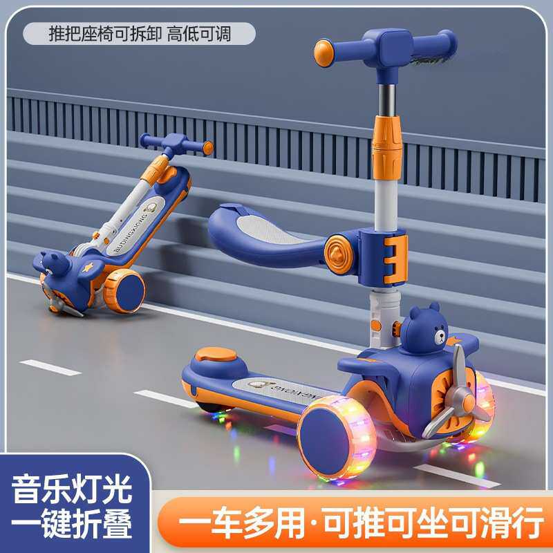 折叠儿童滑板车折叠车可坐滑板车小孩可飞机滑新滑步车滑行卡通风