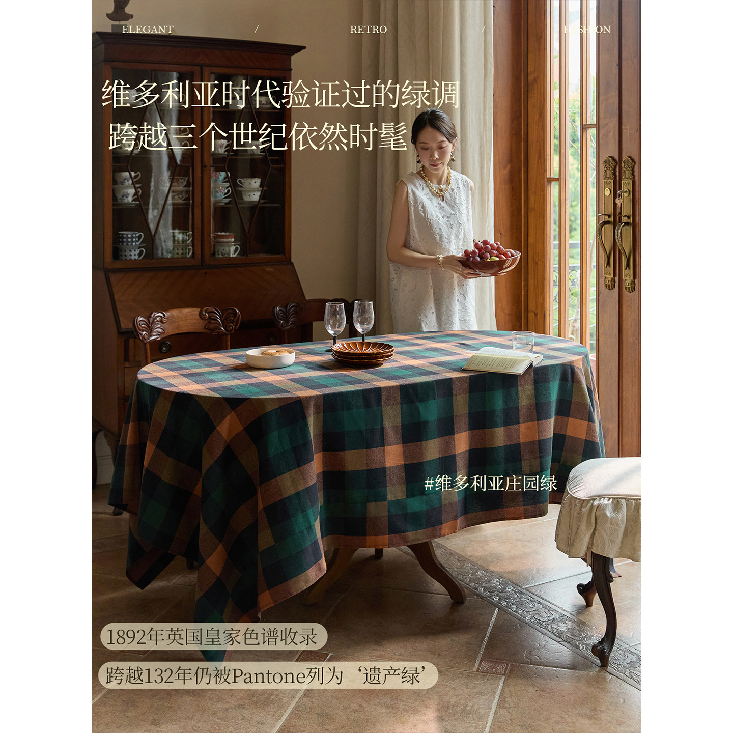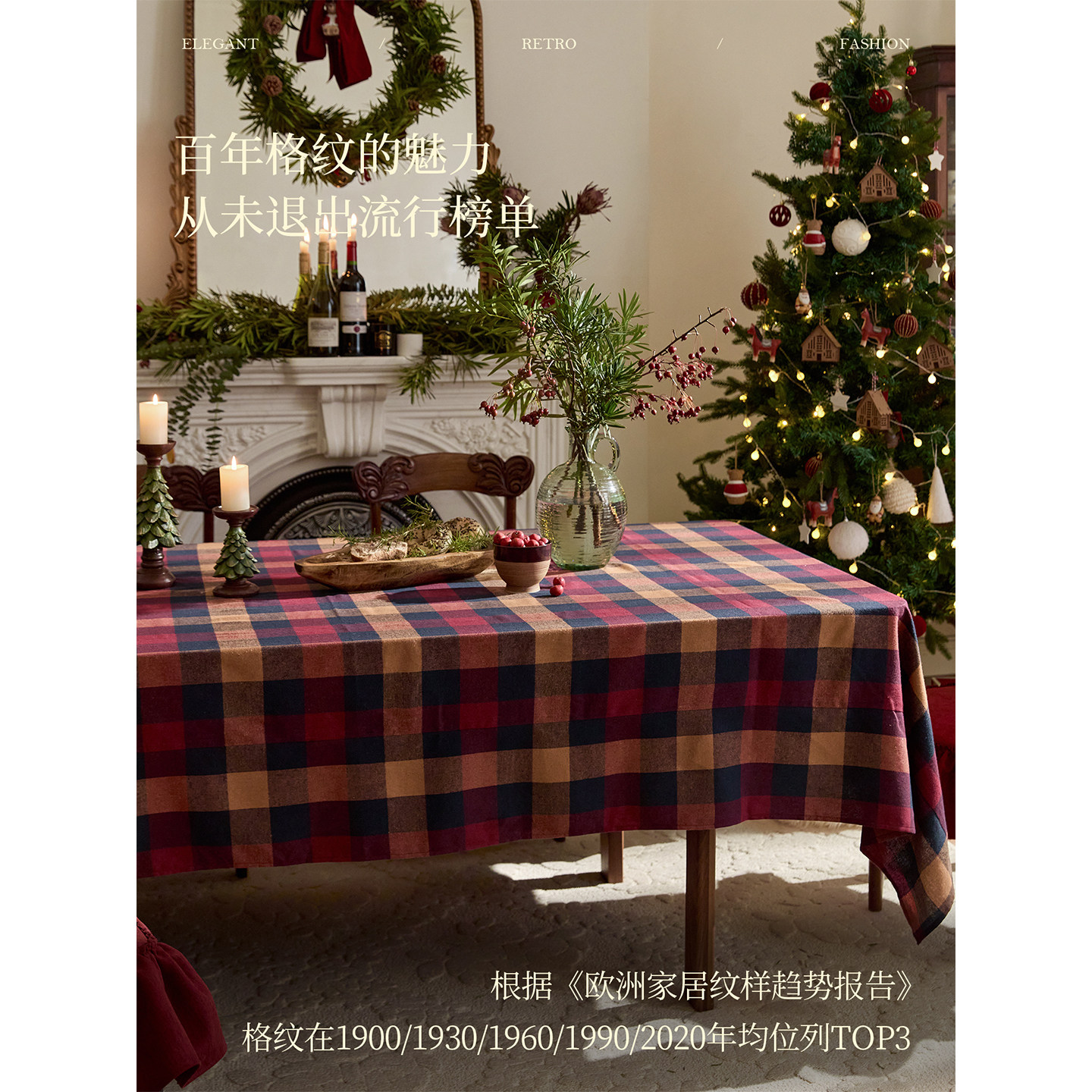 【国补再减15%】蜡笔派野茶格影桌布轻奢复古氛围感长方形茶几布A