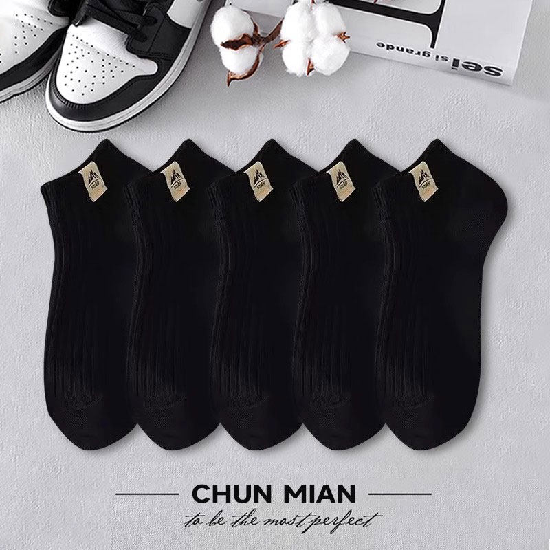 诸暨黑白色袜子男款纯棉2026新款短袜防臭春夏季百搭运动男士船袜