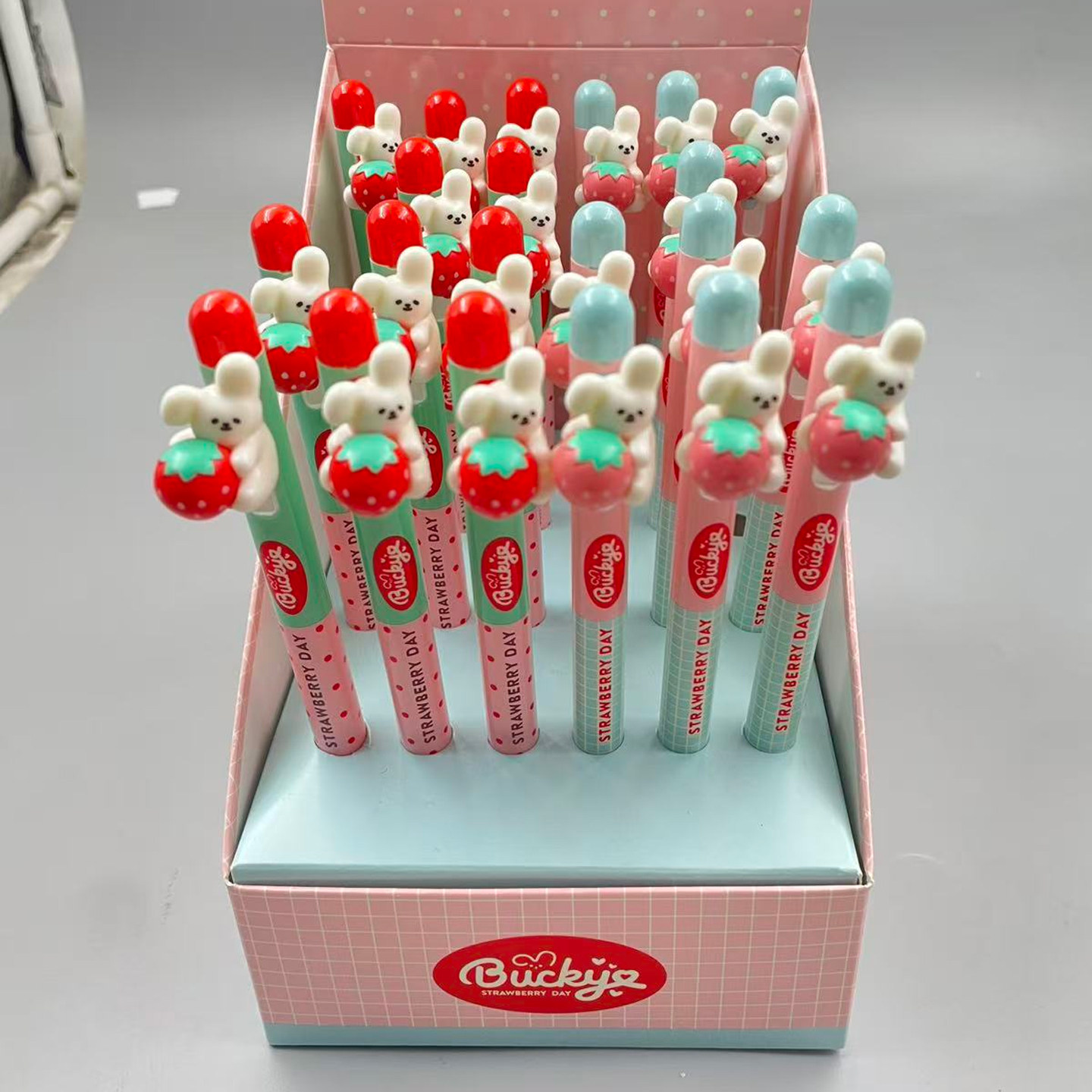 晨光j6833熊抱抱卡通可爱中性笔草莓兔子立体侧按键学生按动水笔