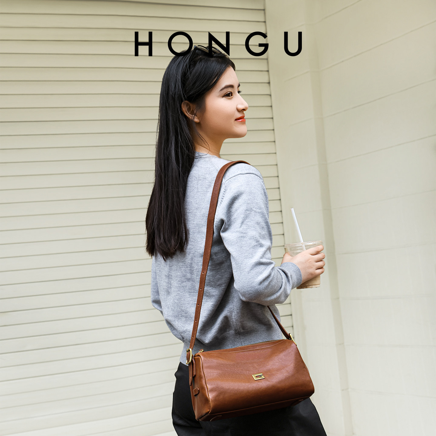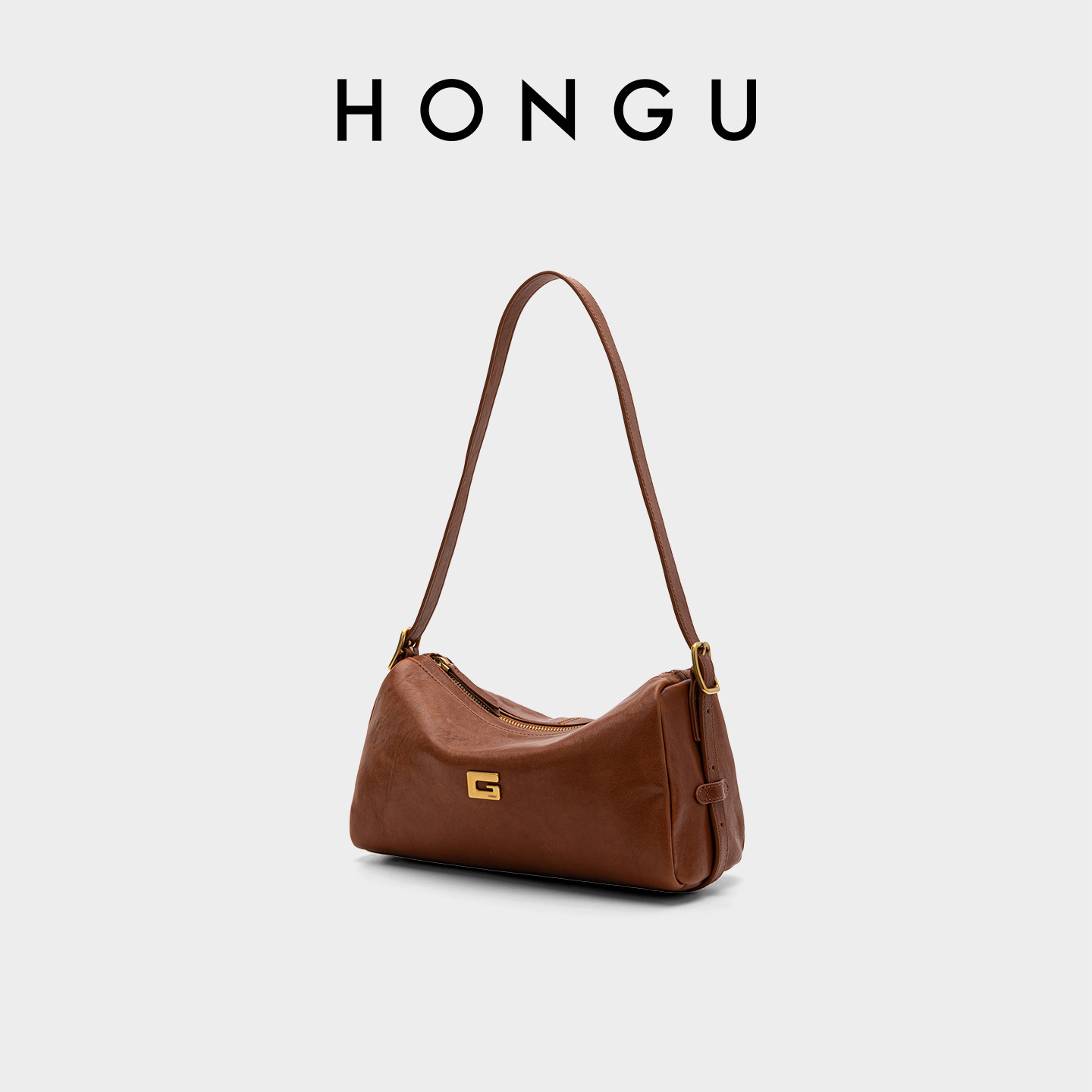红谷包包2026新款植鞣皮腋下包时尚通勤单肩斜挎包真皮女士包软包