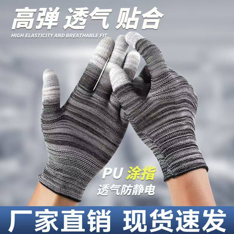 PU涂指手套薄款尼龙耐磨防滑涂指手套工地手套劳保手套防静电手套