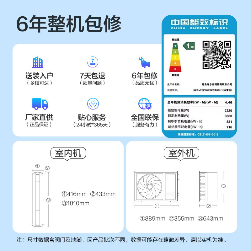海尔空调3匹柜机变频冷暖一级能效大风量立式客厅空调节能省电G