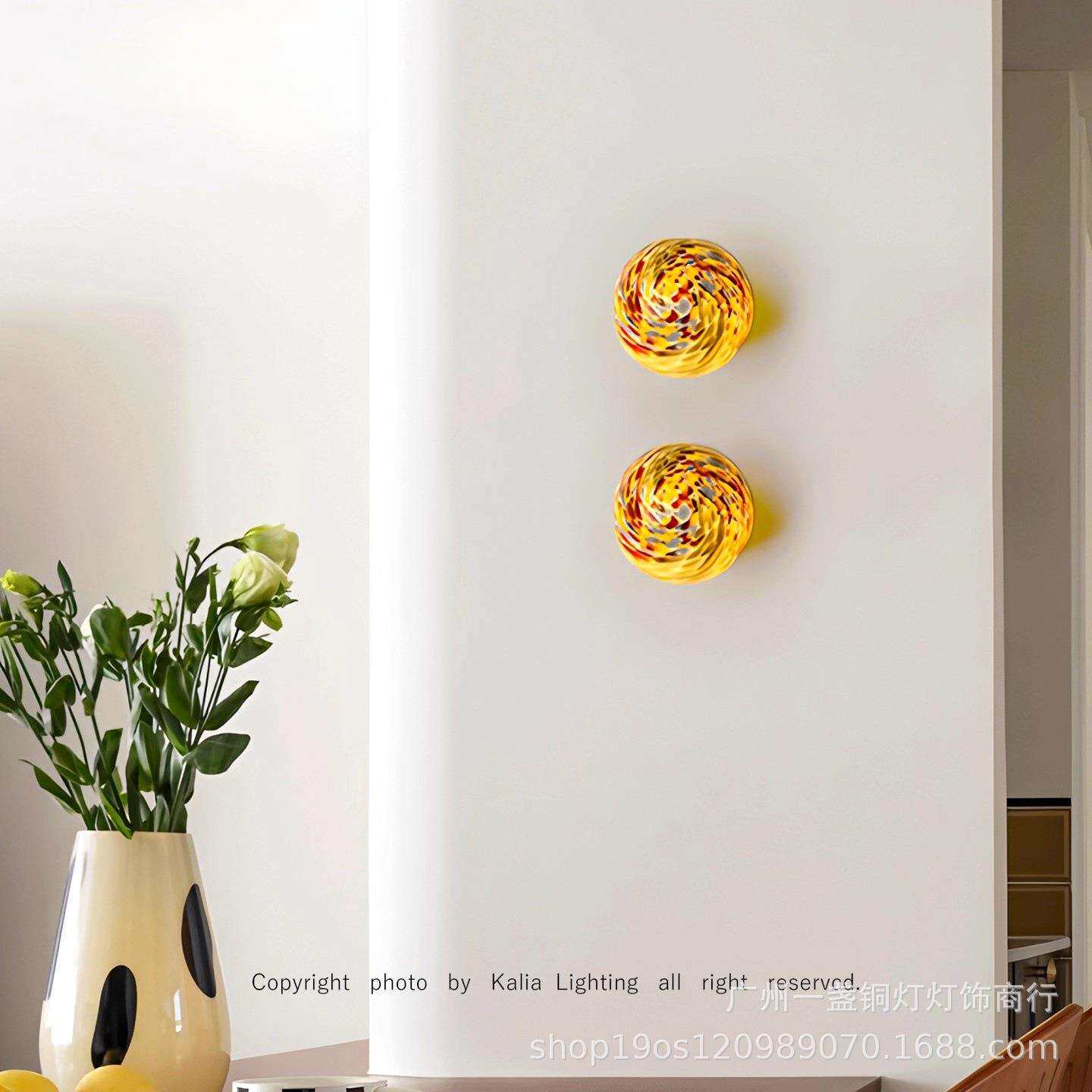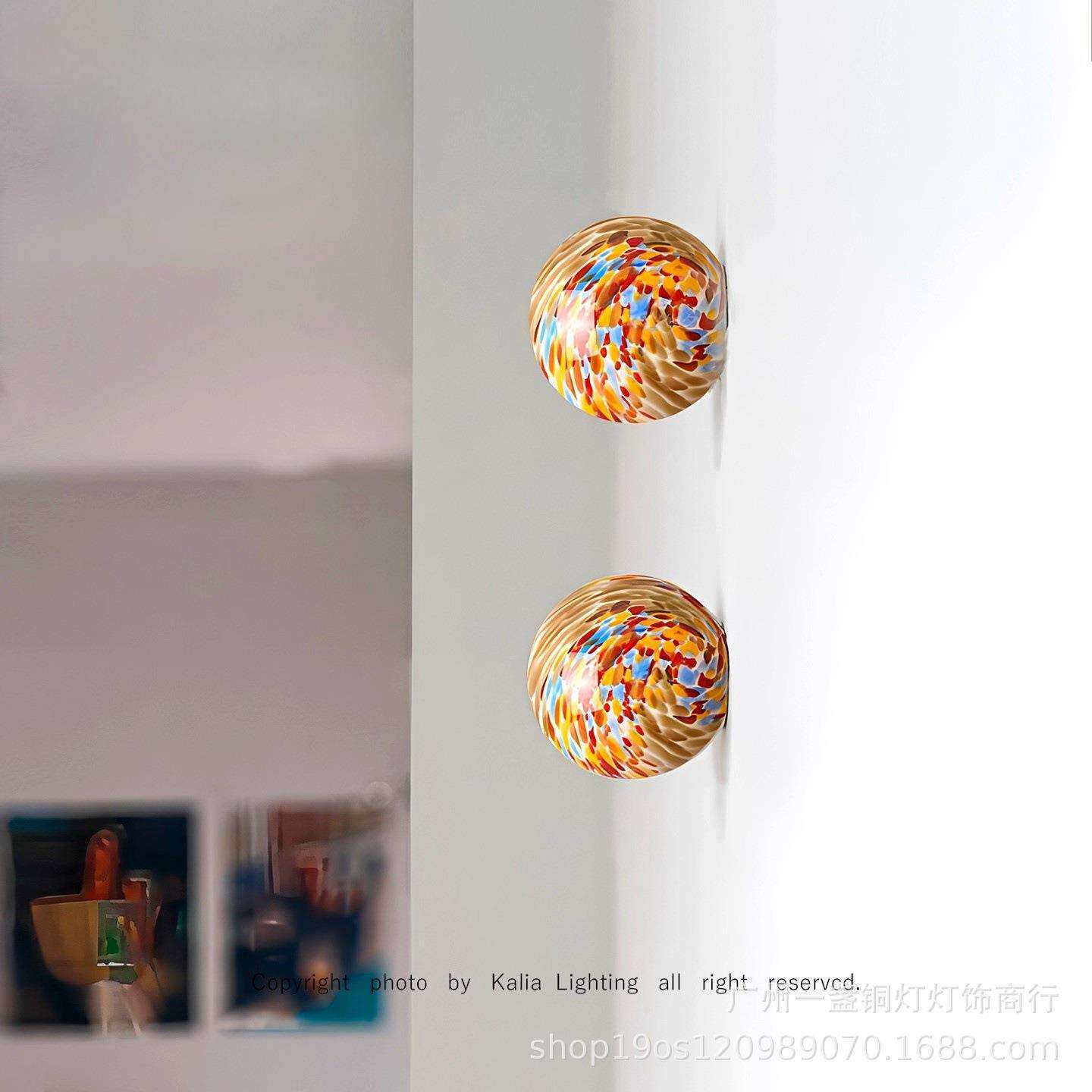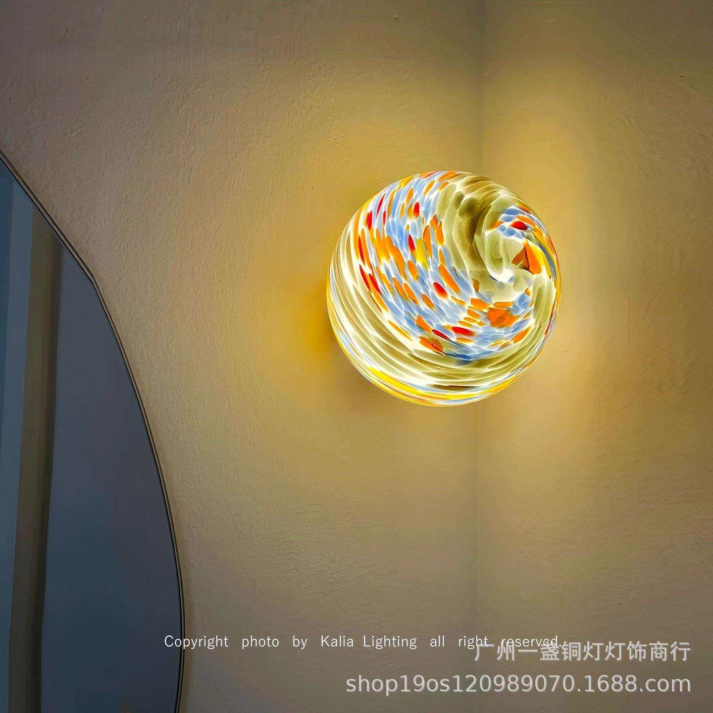 中古圆球壁灯走廊过道灯彩色玻璃入户玄关背景墙灯卧室床头氛围灯
