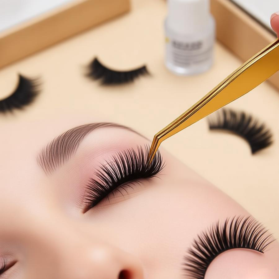 假睫毛镊子嫁接睫毛夹金色金羽夹高精度开花夹子工具美睫师专用