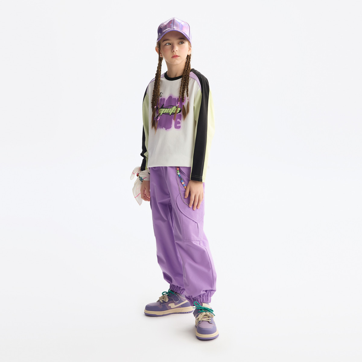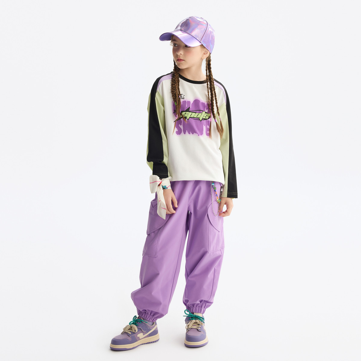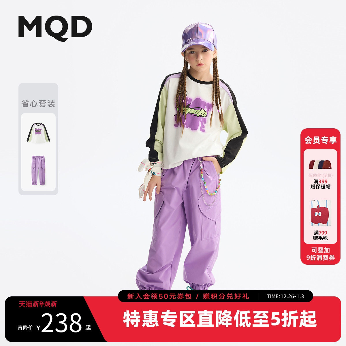 MQD童装女童打底衫套装2025春季新款儿童长袖t恤撞色运动两件套