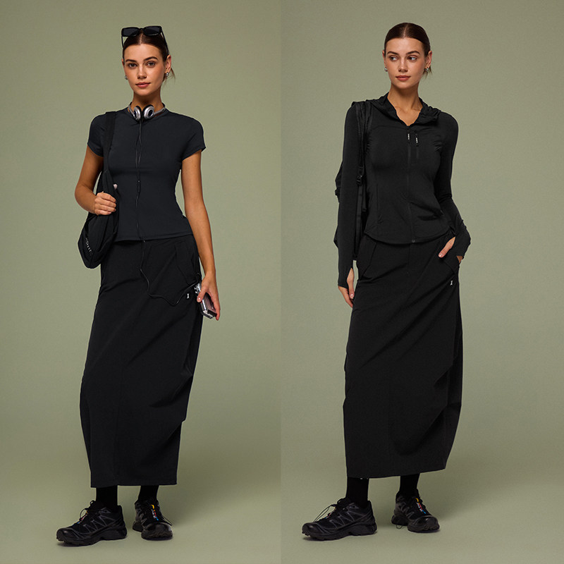 森马半身裙女夏季松紧腰肌理垂感分割A字裙宽松松弛感山本风长裙