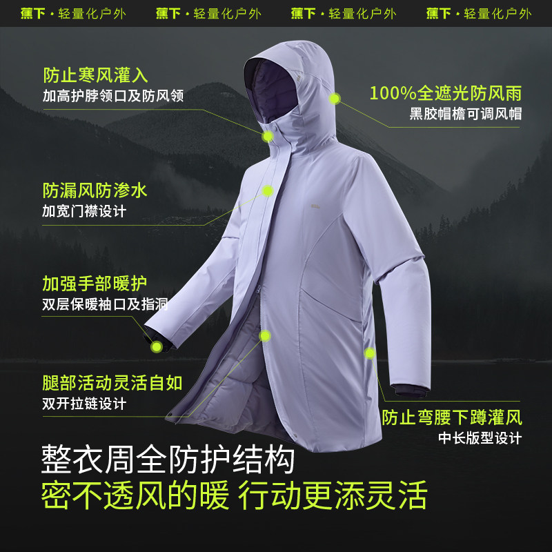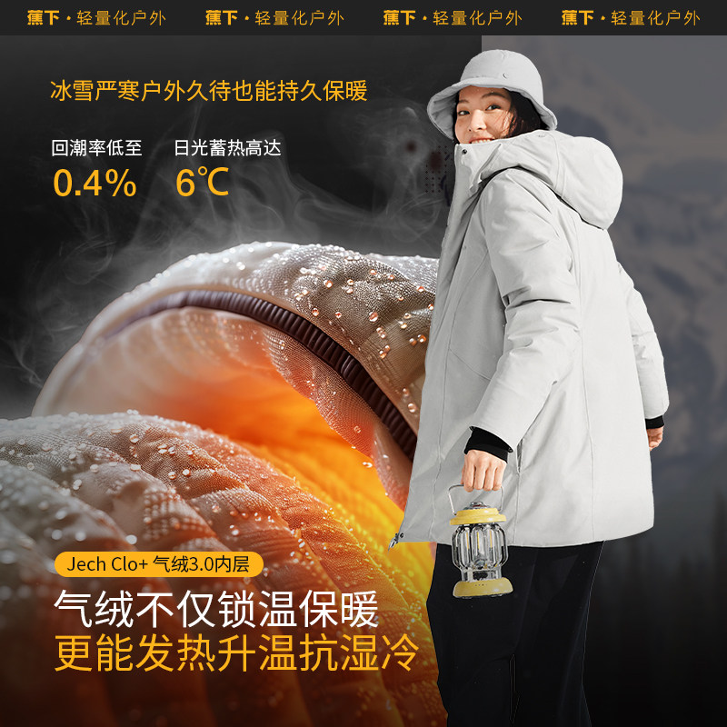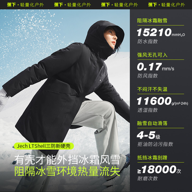 蕉下女硬壳气绒服保暖似羽绒棉衣中长棉服防水派克服防风登山外套