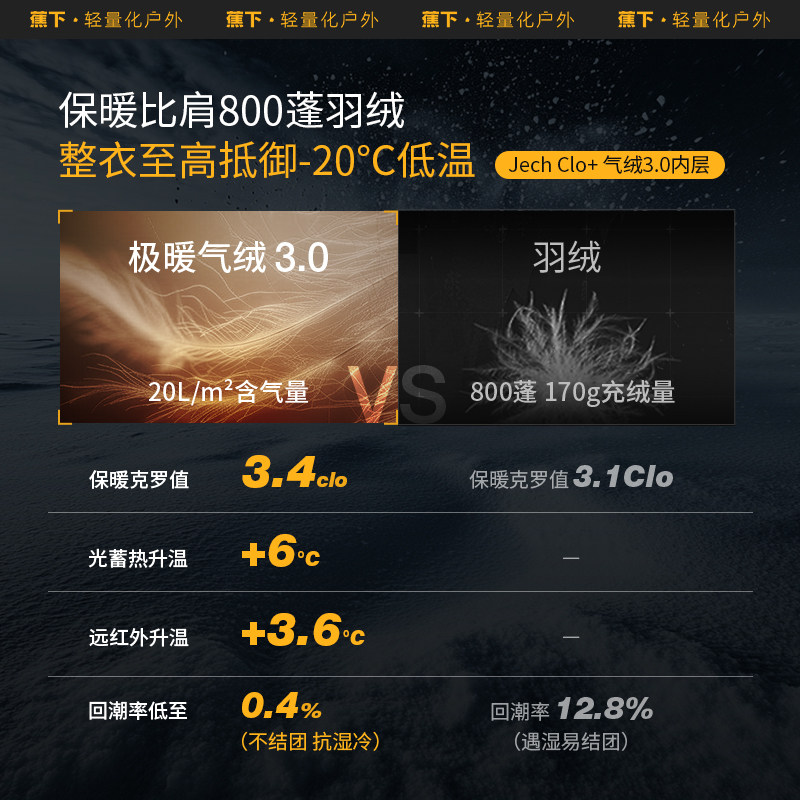 蕉下高弹气绒服女秋新款运动棉衣保暖似羽绒冲锋衣内胆修身短外套