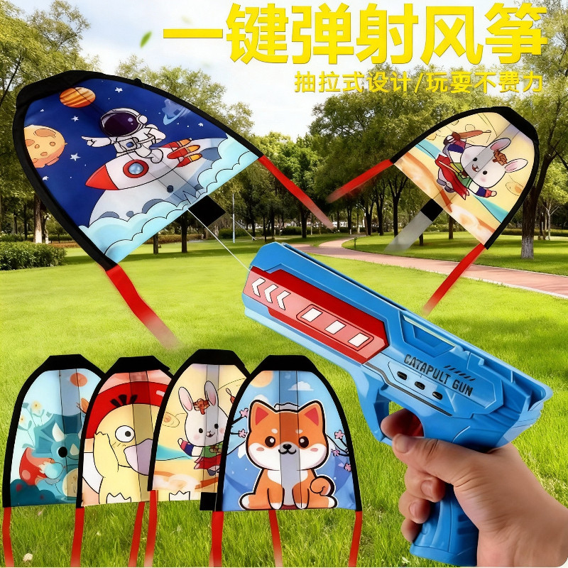 弹射风筝手持飞机枪男孩男童户外滑翔机发射枪儿童手抛飞天小玩具
