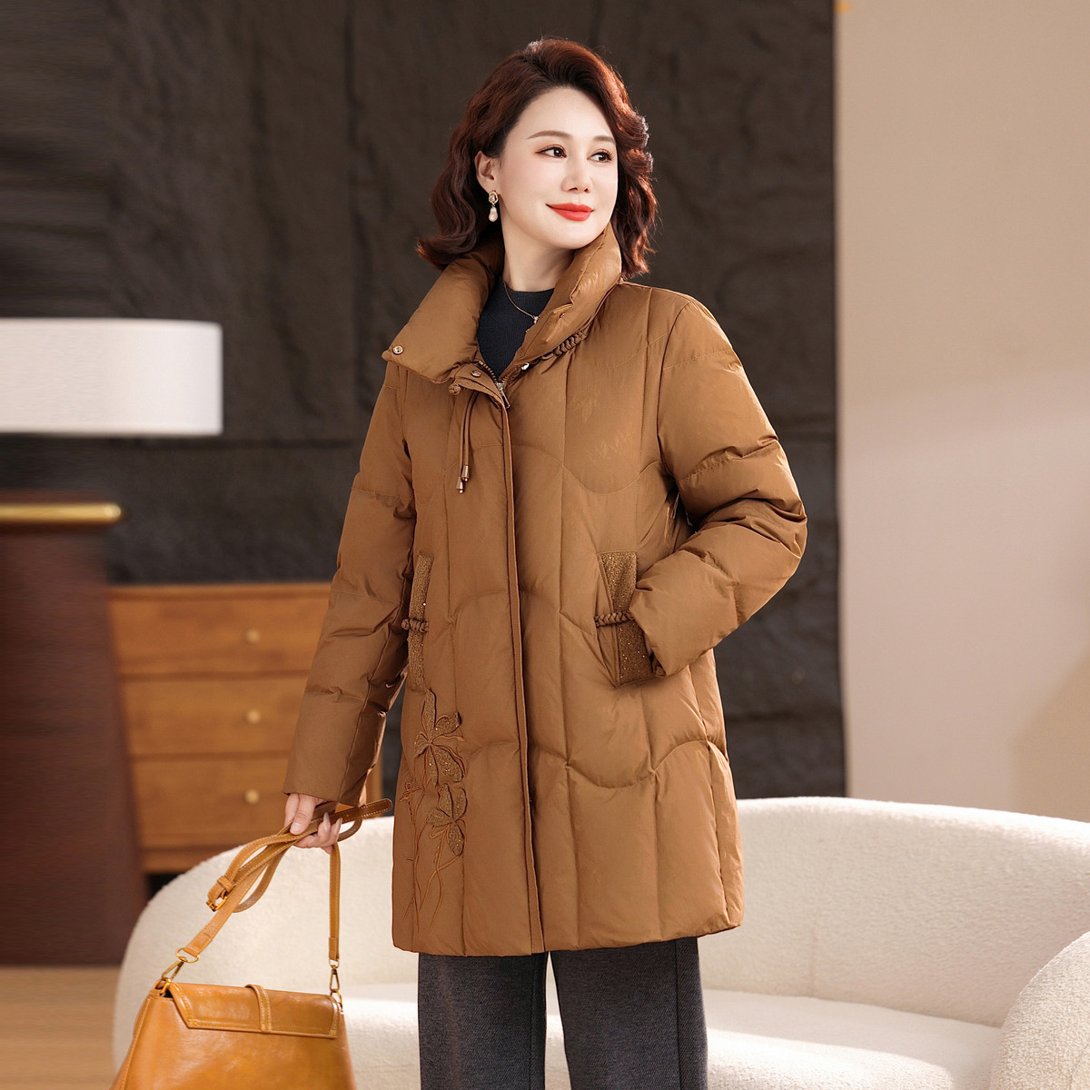 雪中飞2026春新款女士中长款羽绒服典雅刺绣新国风中老年妈妈装