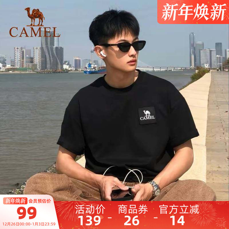 骆驼户外速干T恤男夏季宽松黑色半袖上衣棉t吸湿排汗徒步登山T恤