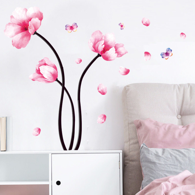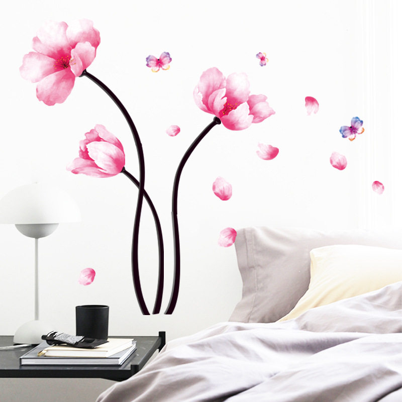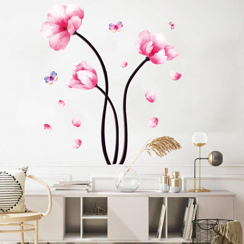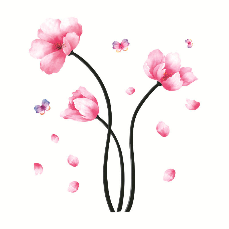手绘郁金香墙贴PVC平面墙壁贴纸壁画房间客厅简约现代花卉装饰画
