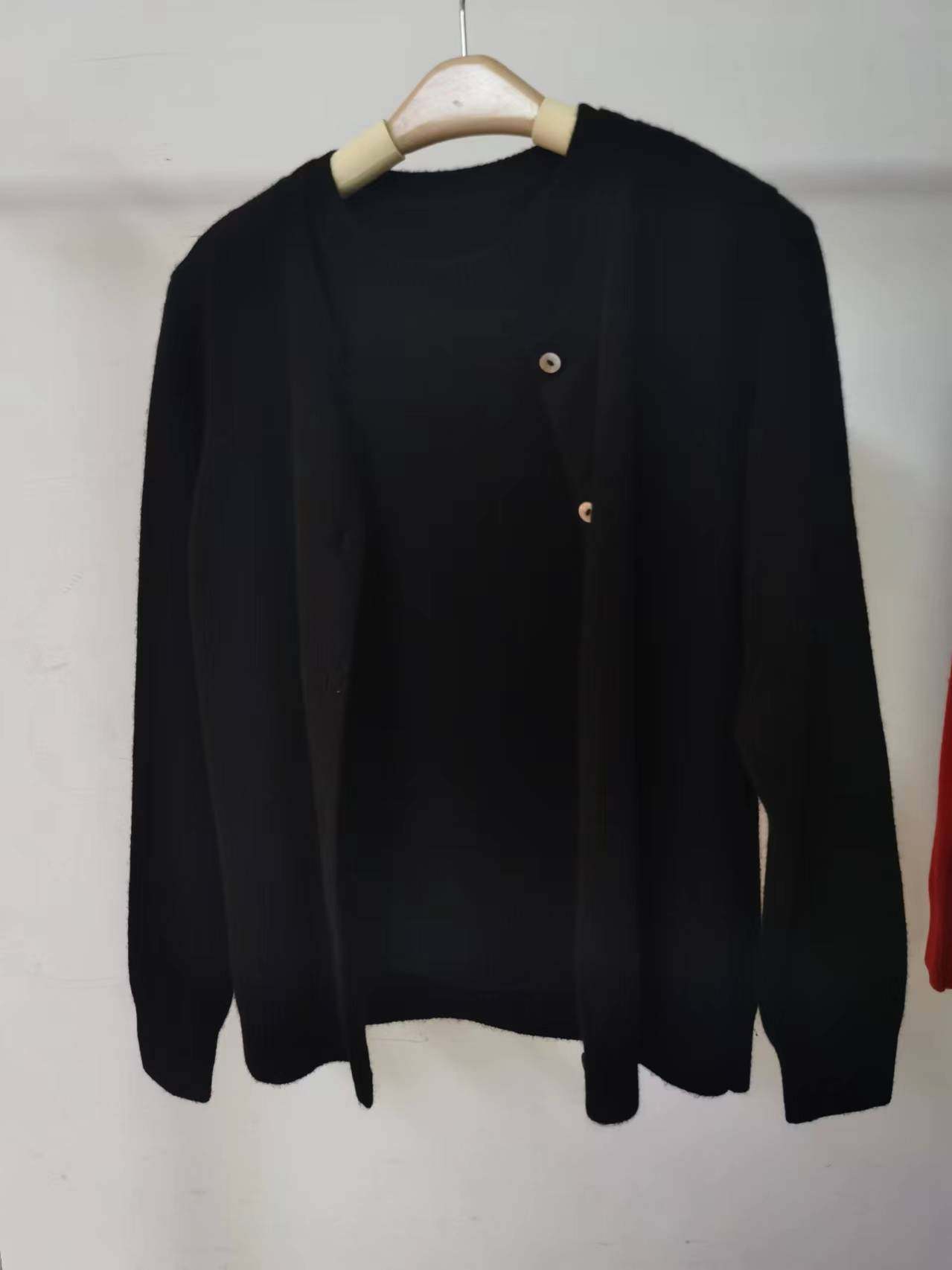 康赛妮~可机洗经典miu风美利奴羊毛羊绒开衫背心两件套