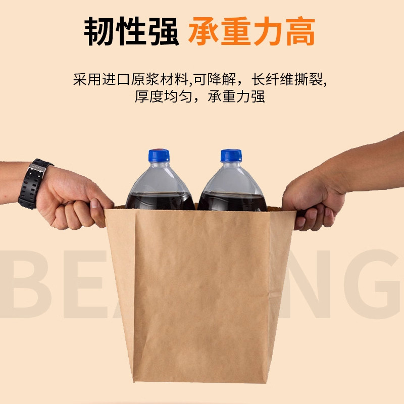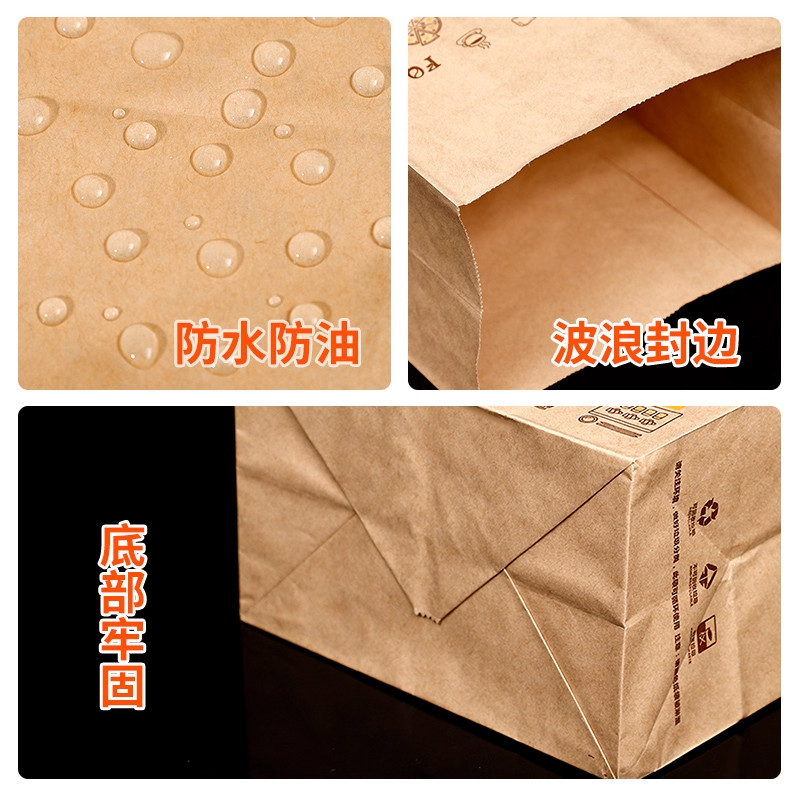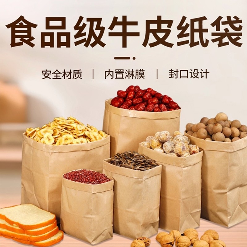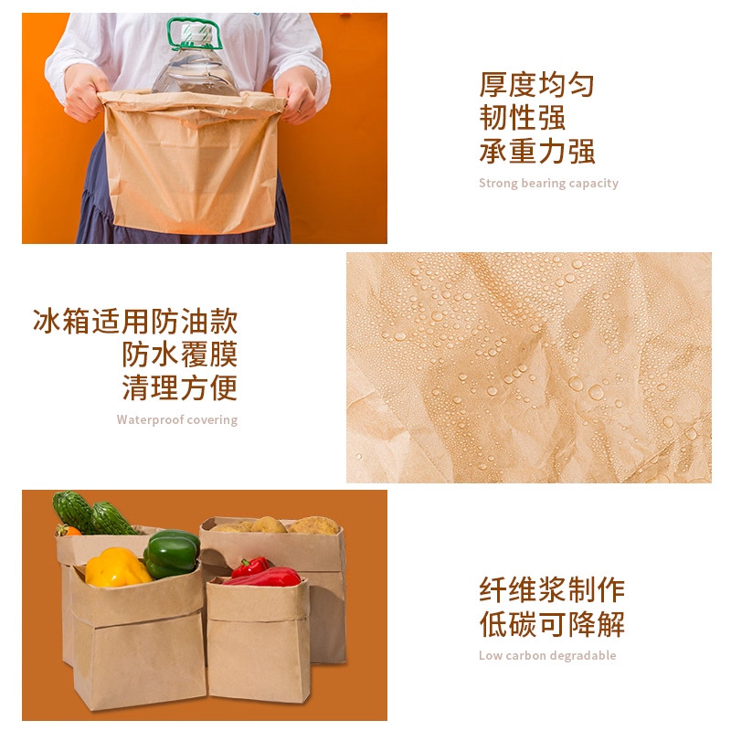 食品级牛皮纸袋冰箱果蔬收纳袋加厚防油外卖小吃面包打包纸袋防水