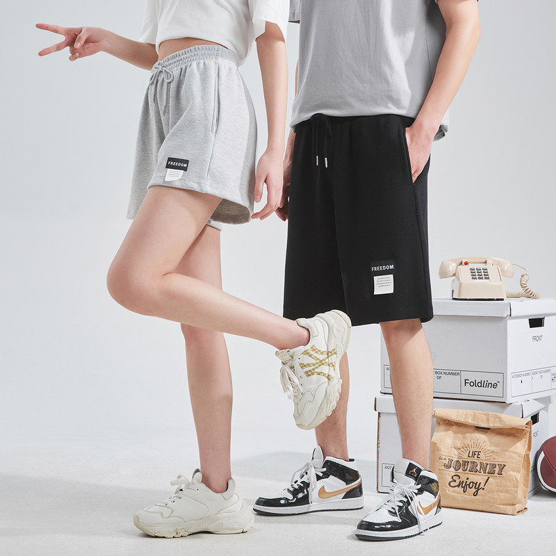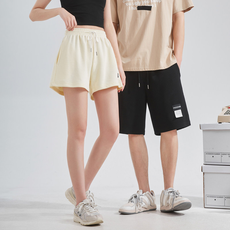 唐狮春夏情侣休闲短裤男浅色薄款垂感华夫格女运动裤潮少年感穿搭