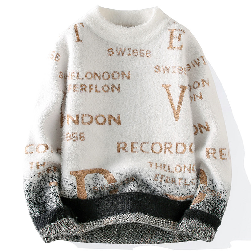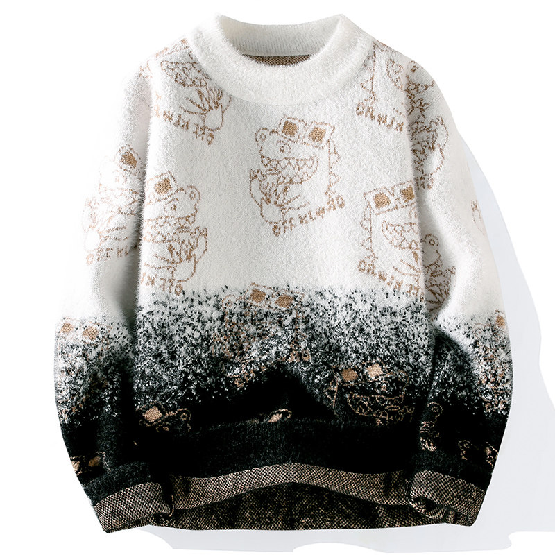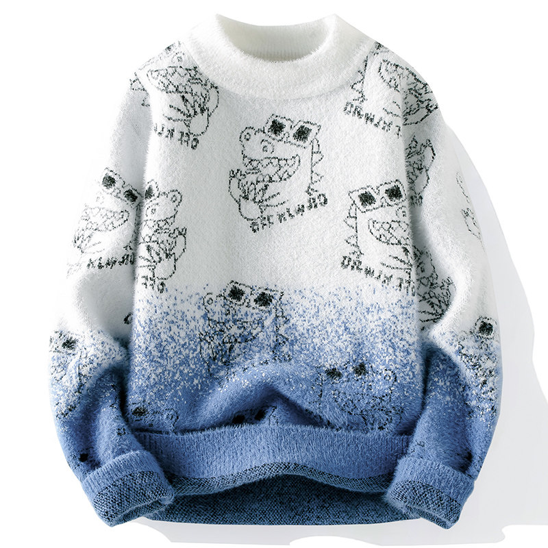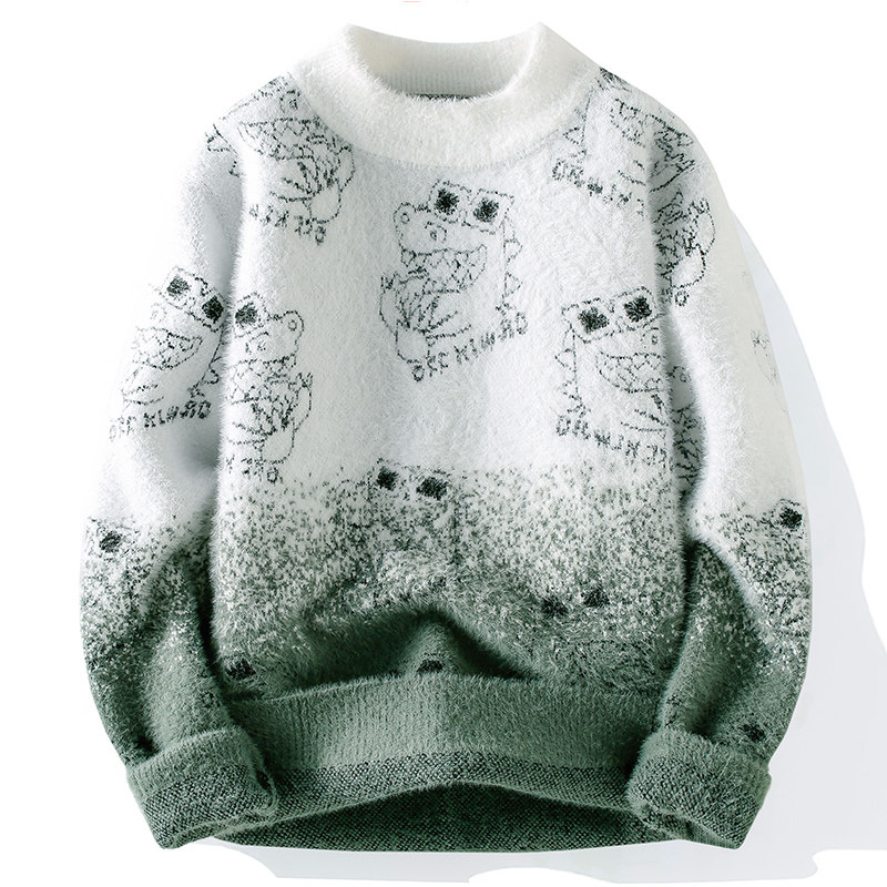 青少年仿水貂绒加厚保暖毛衣儿童半高领毛绒衫冬季白色加绒黑色