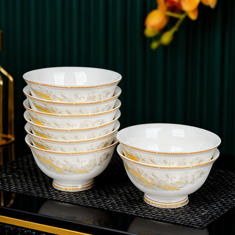 碗家用碗高脚防烫景德镇碗饭碗高级感新款描金饭碗陶瓷餐具吃饭碗