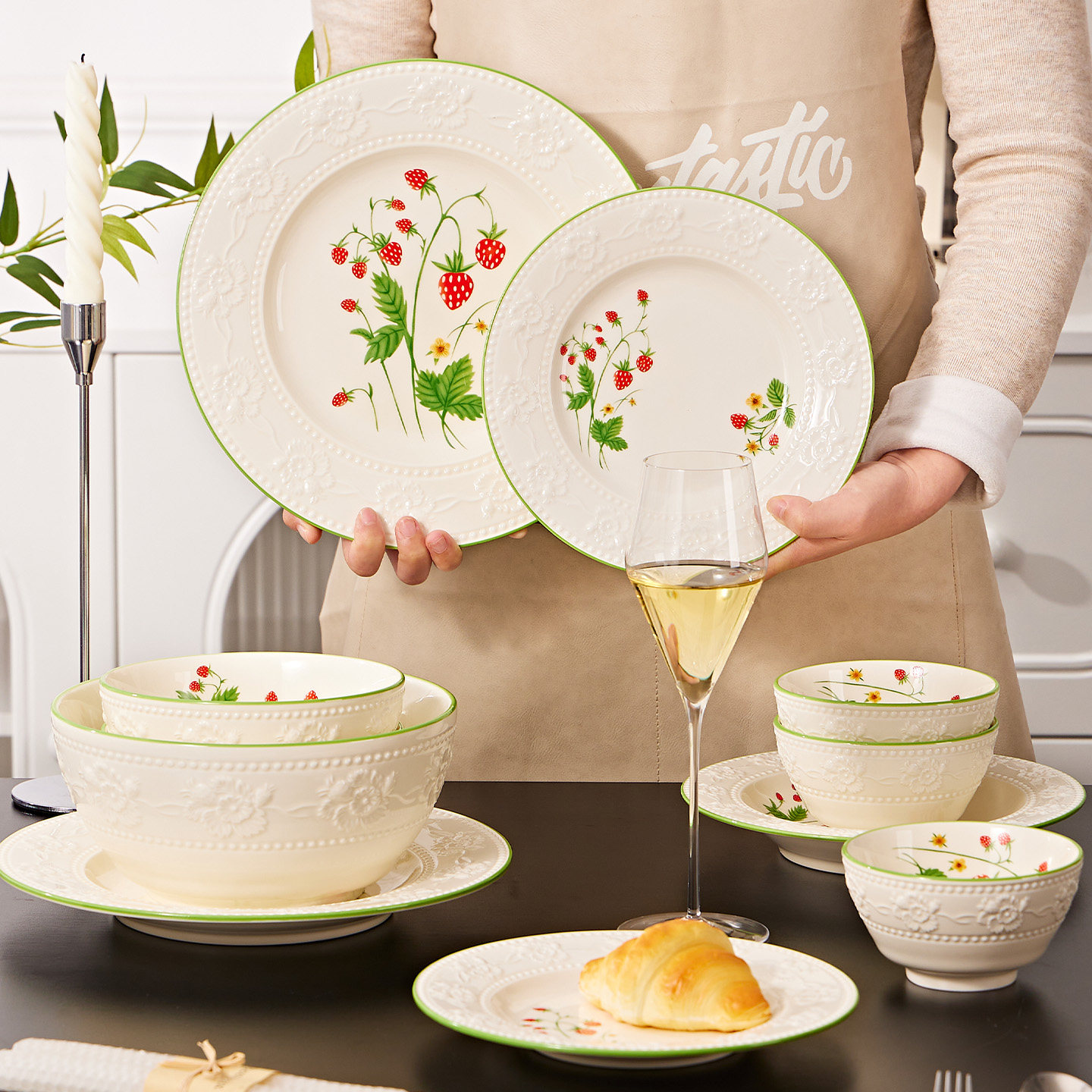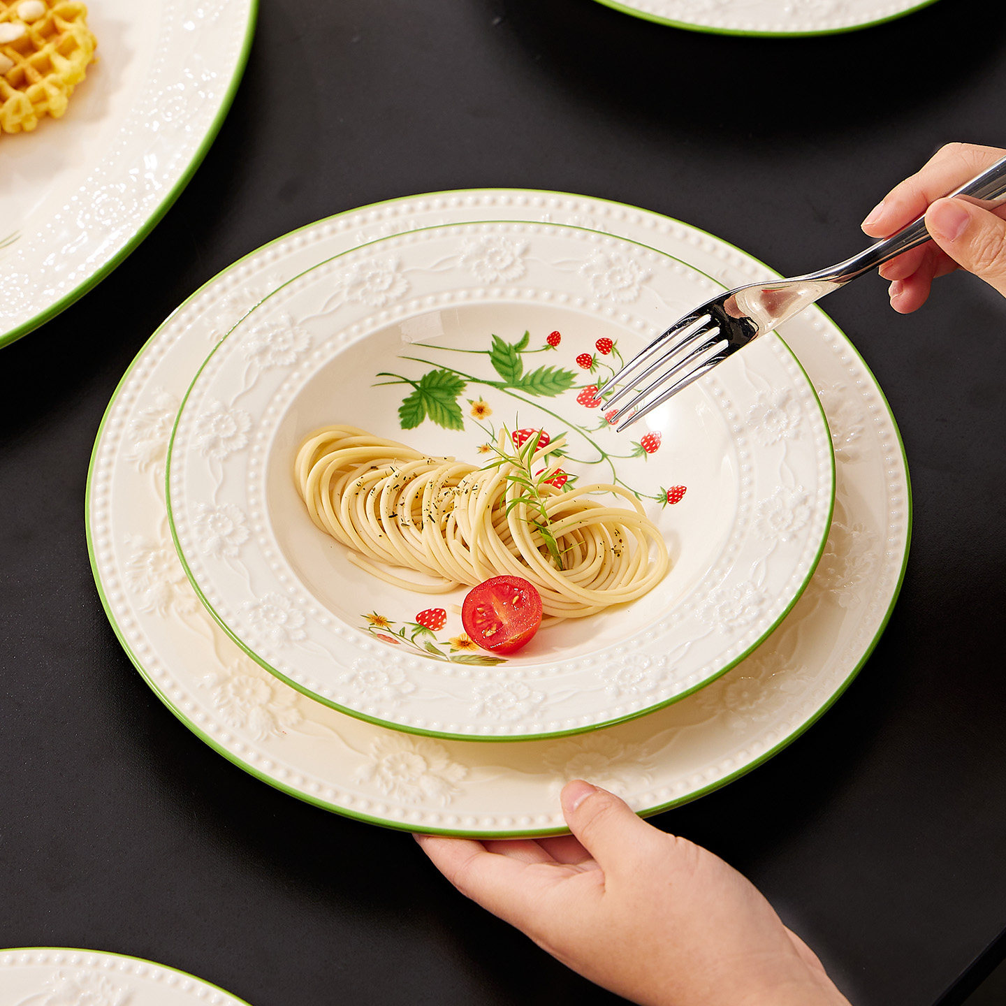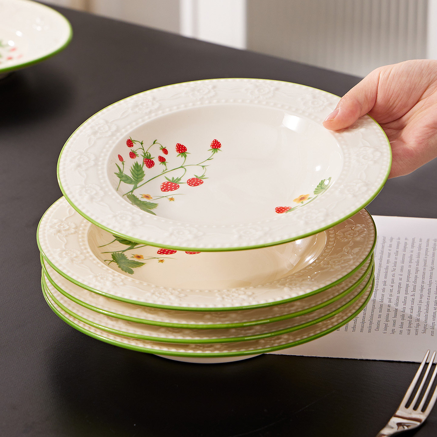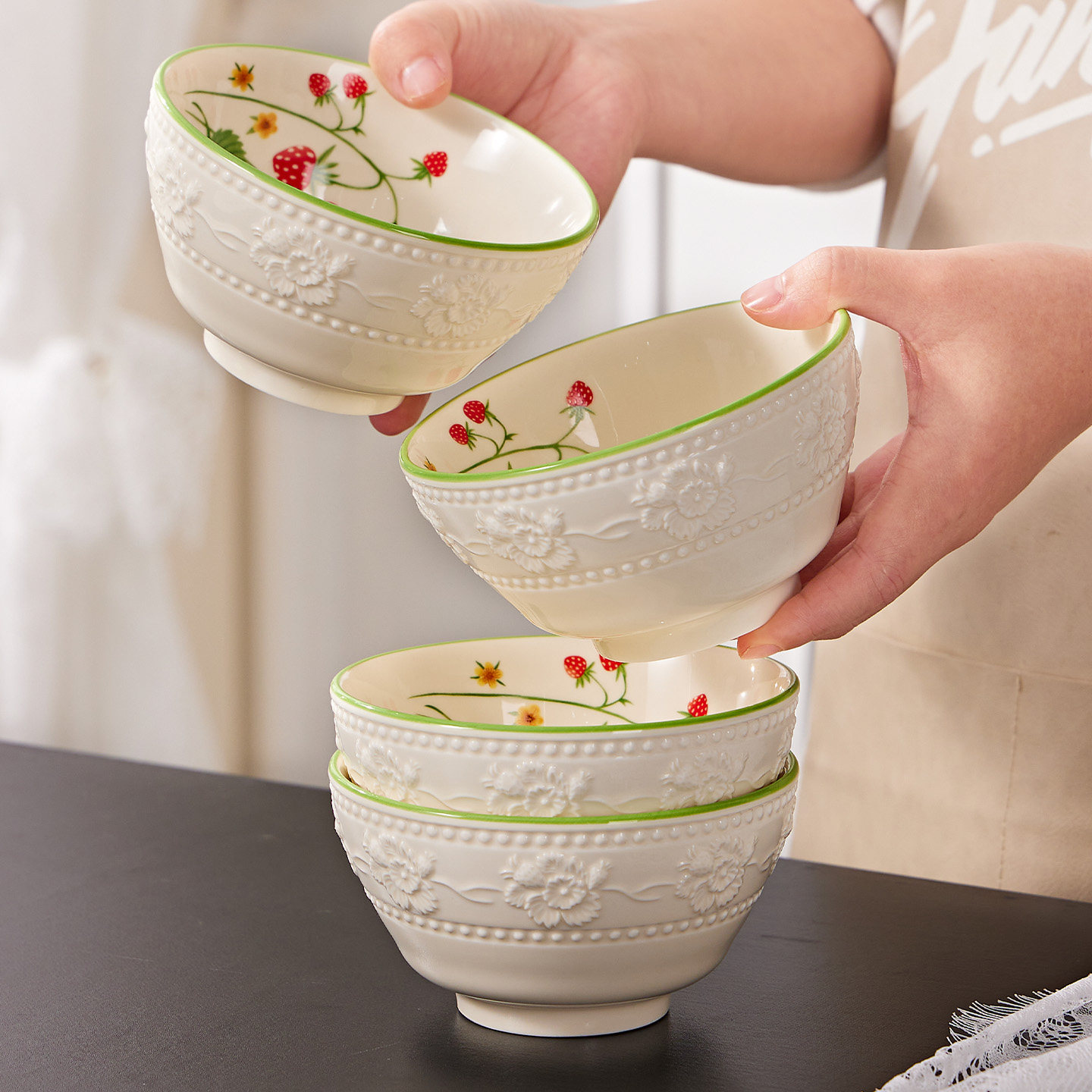 碗家用2025新款餐具碗盘碗碟漂亮的小碗的草莓饭碗法式高温釉下彩