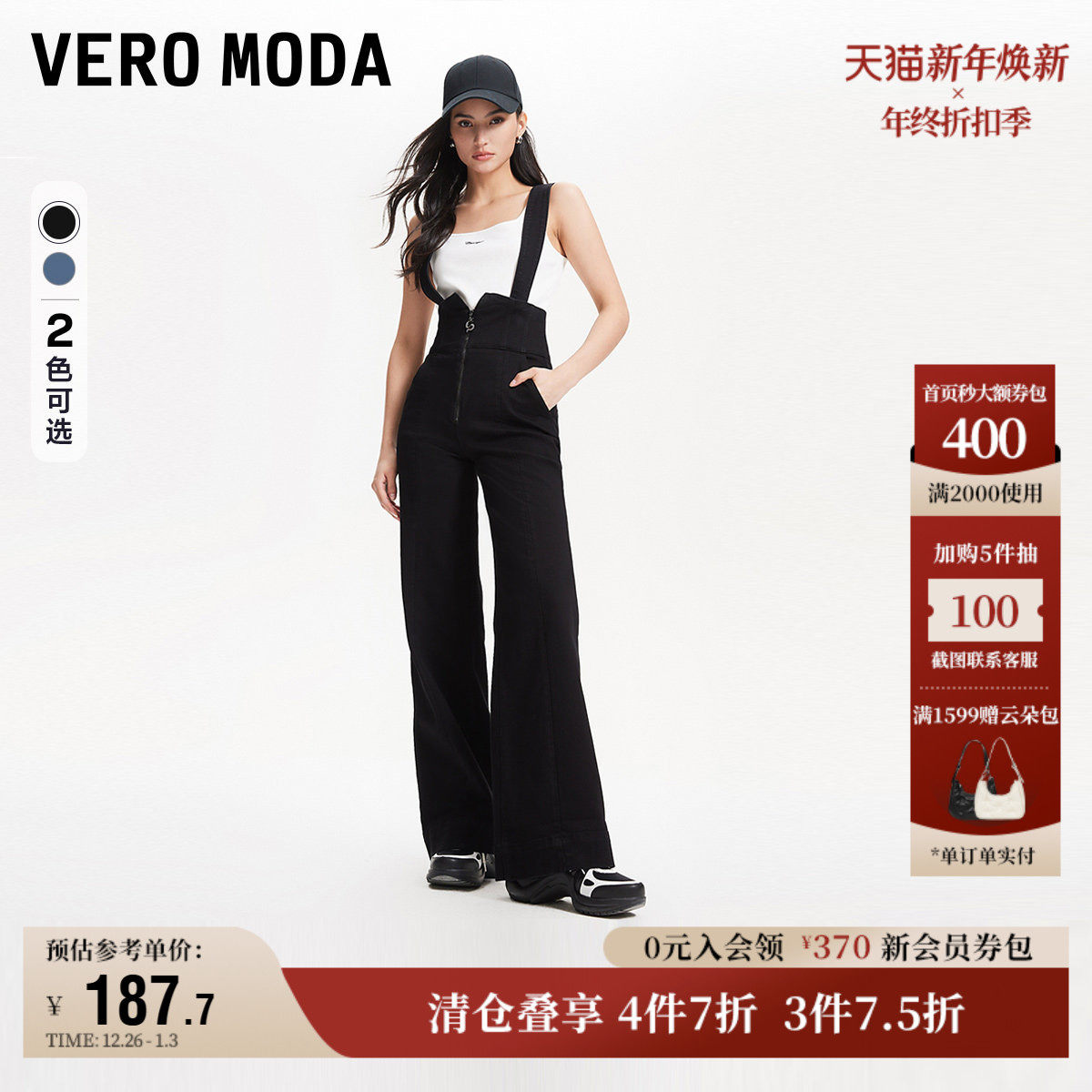 Vero Moda奥莱牛仔背带裤女春秋新款高腰修身显瘦宽松喇叭裤流行