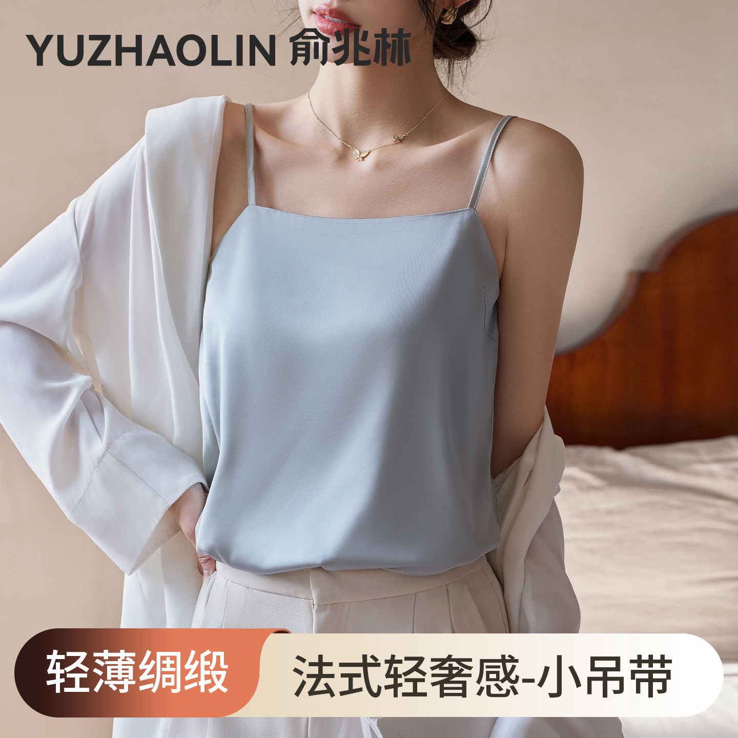 法式性感百搭细肩带吊带真丝裸感不勒肩防滑
