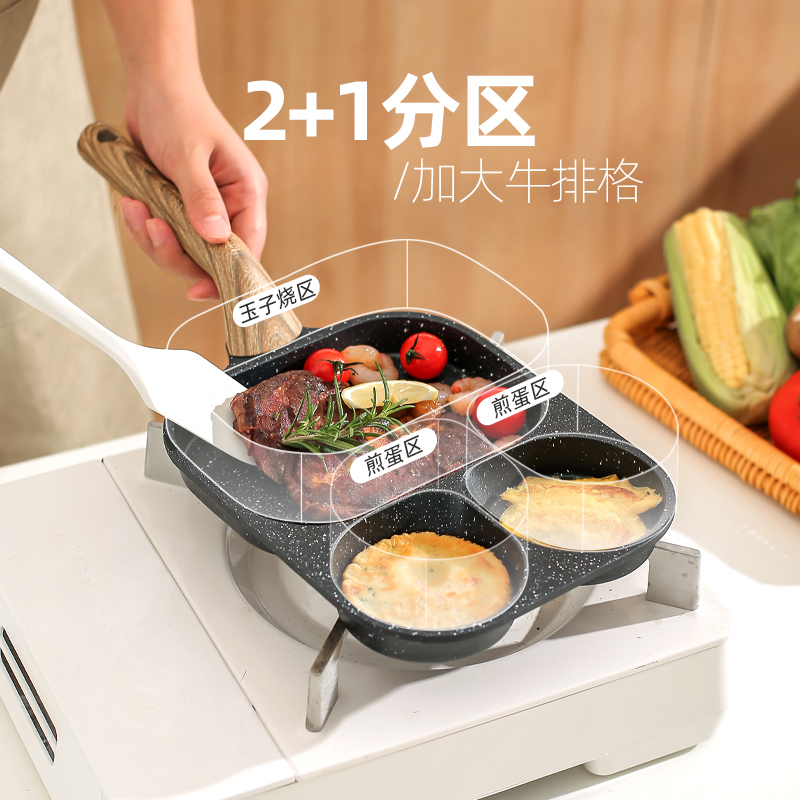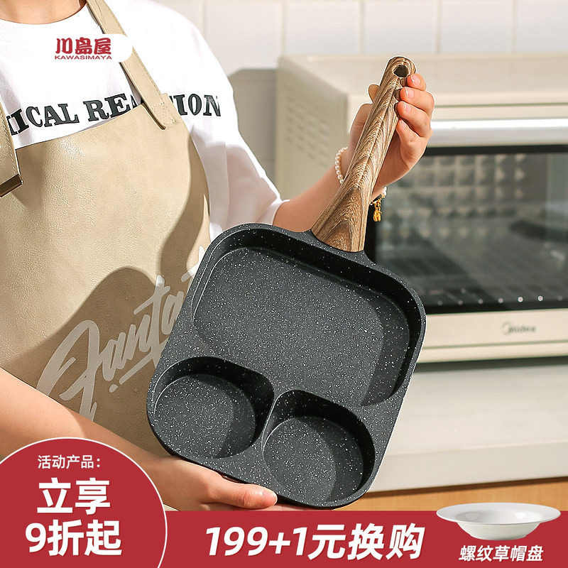 川岛屋三合一早餐锅鸡蛋汉堡锅平底锅家用不粘锅牛排煎锅煎蛋神器