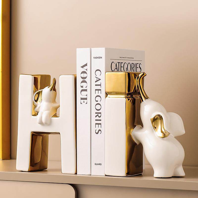 创意大象书档摆件轻奢高档客厅斗柜电视柜酒柜玄关书柜书立装饰品