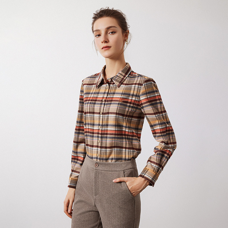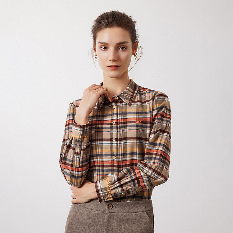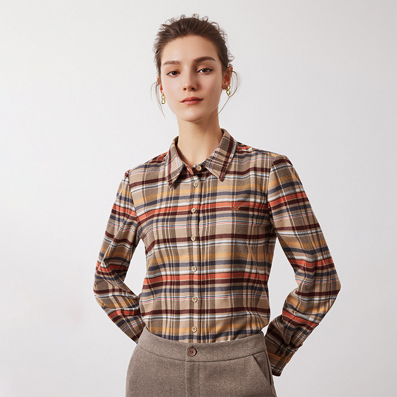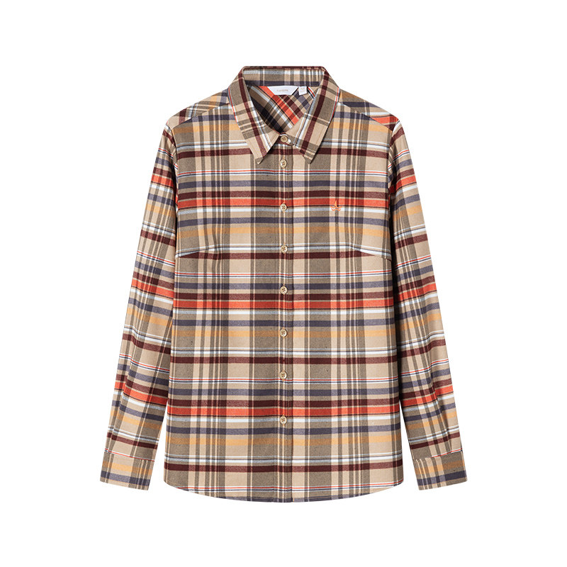 [磨毛]Navigare意大利小帆船卡其色格子衬衫女长袖新款休闲衬衣