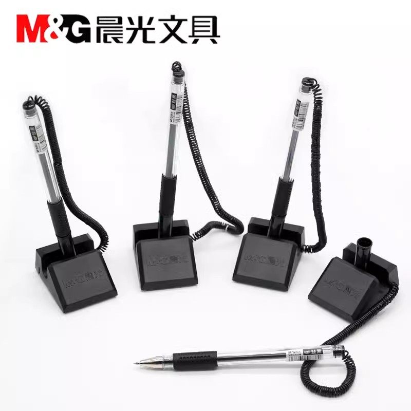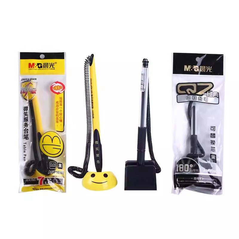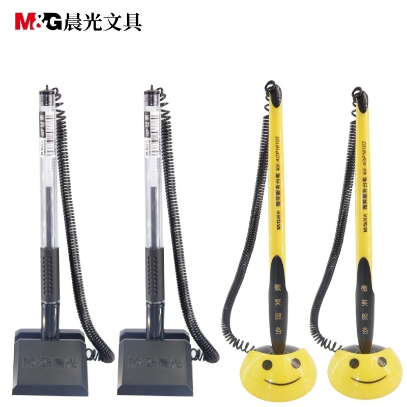晨光微笑台笔银行桌面固定笔医用前台办公服务笔地座带线防丢笔