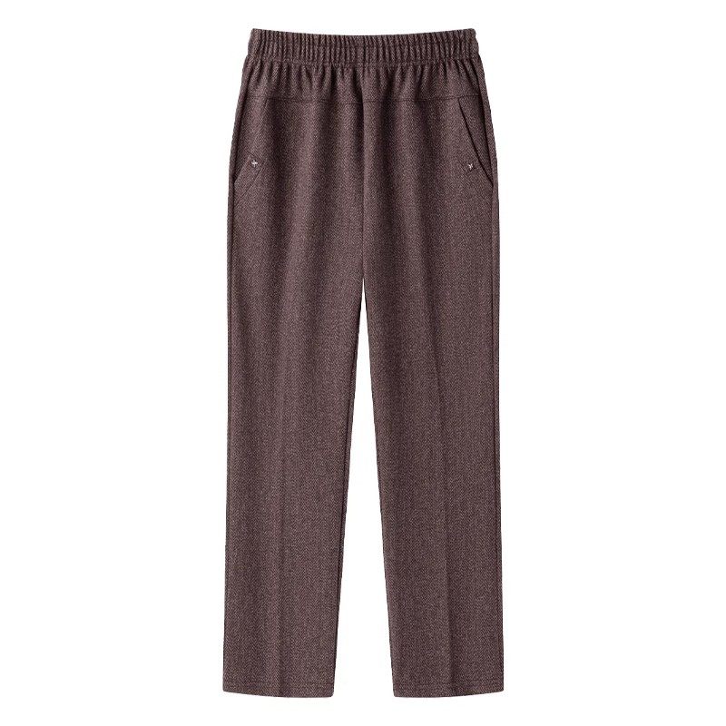 妈妈裤子春秋款松紧高腰弹力中老年女裤宽松大码直筒奶奶加绒长裤