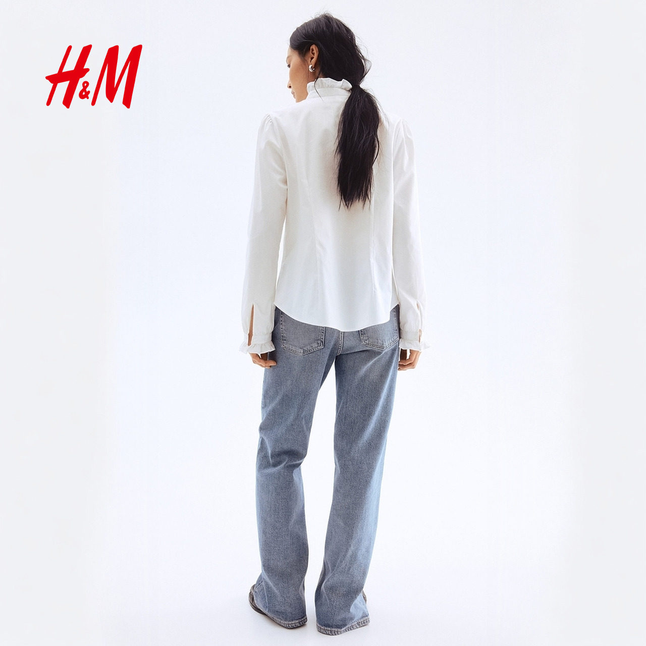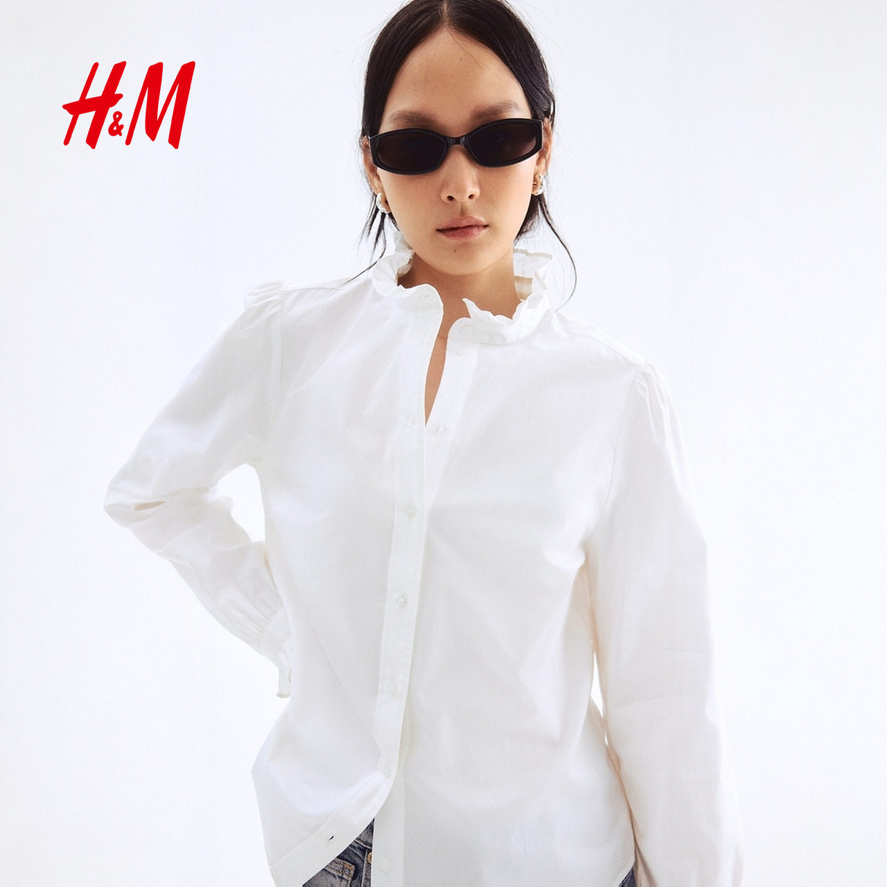HM女装衬衫2025冬季新款时尚潮流简约气质荷叶边领口衬衫1295517