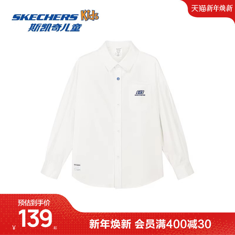 Skechers斯凯奇2025年春季儿童棉花糖白长袖衬衫