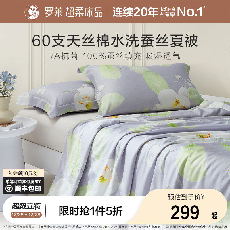罗莱家纺蚕丝被夏凉被儿童被子被芯空调被可水洗天丝纤维抗菌夏季