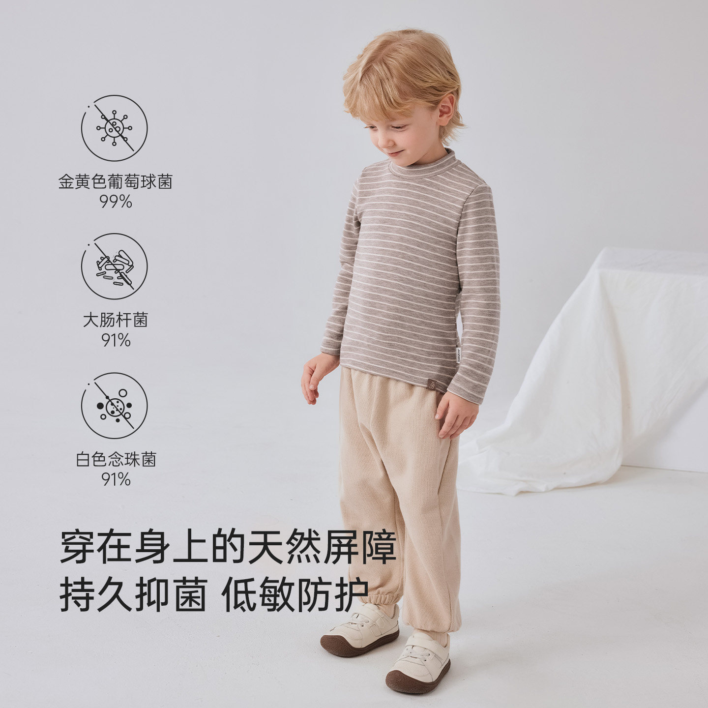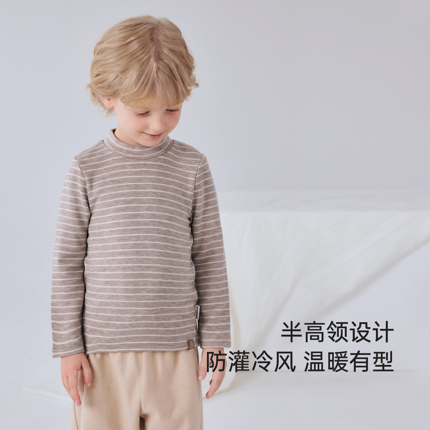 [发热]齐齐熊男童打底衫冬款宝宝条纹儿童半高领T恤童装女童纯色
