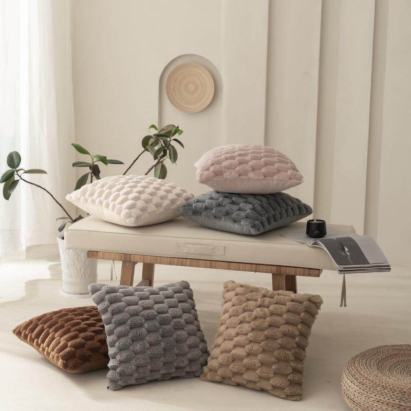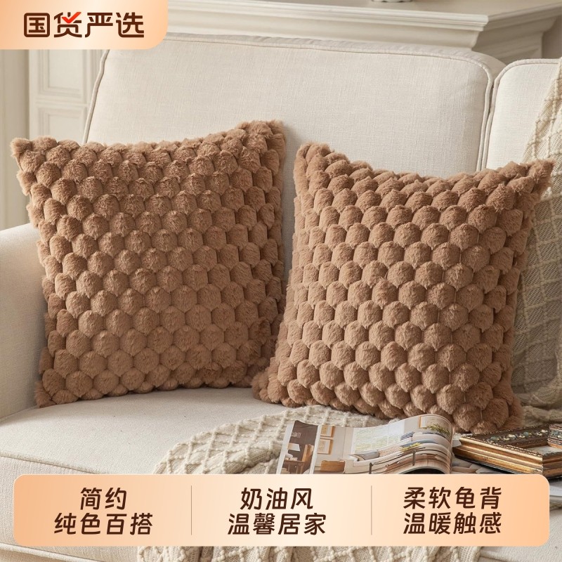 轻奢毛绒抱枕套客厅沙发单人靠枕靠背床头靠垫套方形简约可拆洗