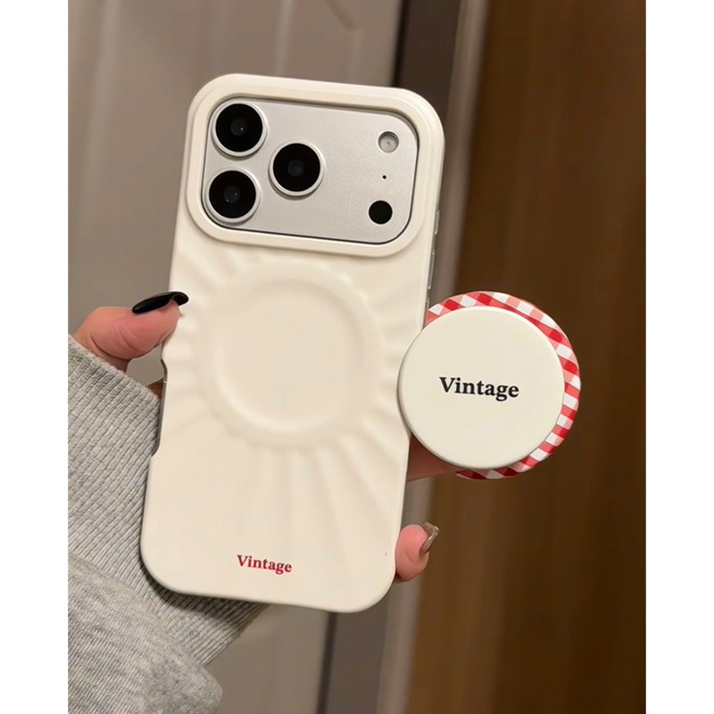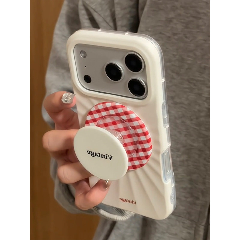 古董白红格纹英文磁吸支架适用苹果17promax手机壳iPhone17女新款16高级感15小众14个性16Pro防摔保护套13男