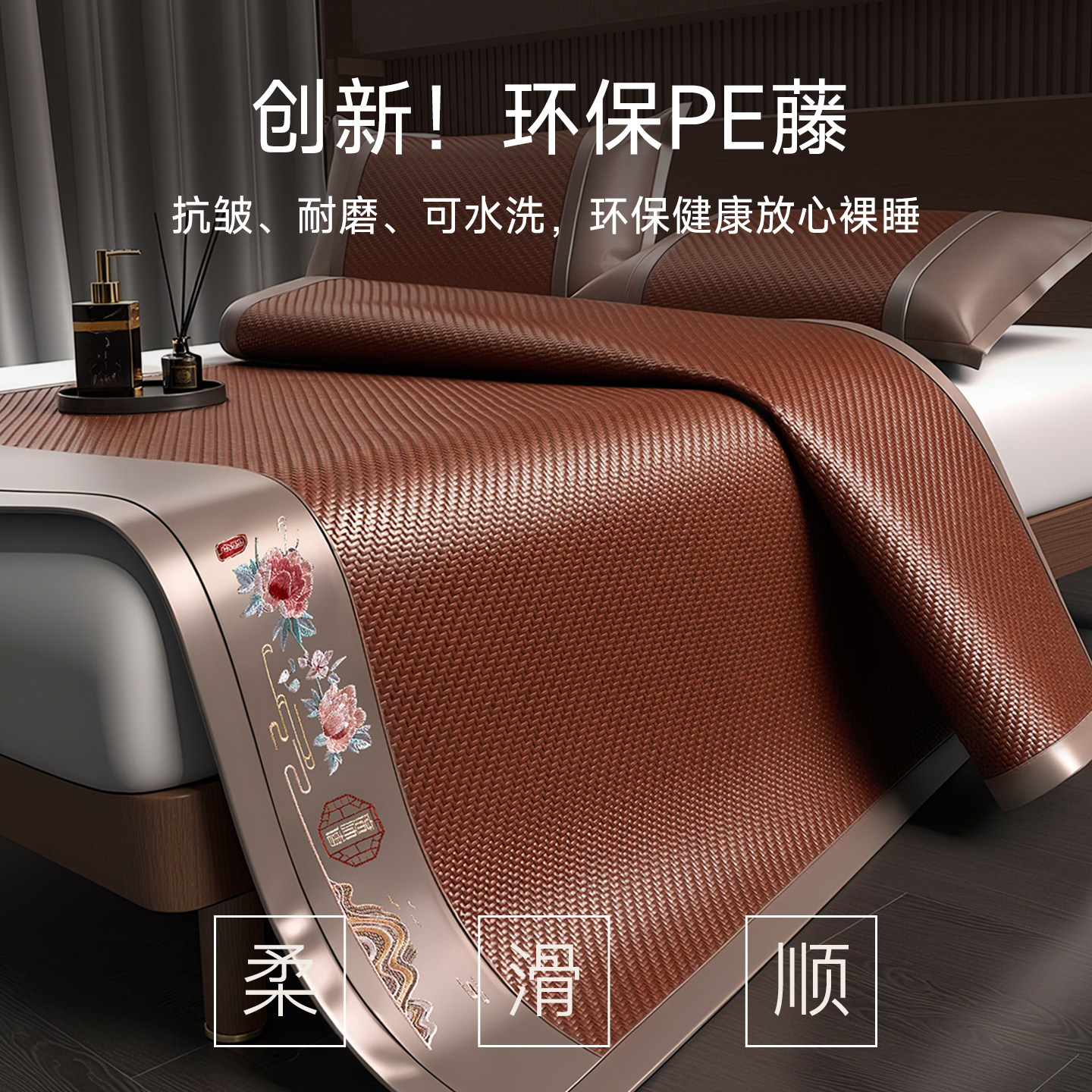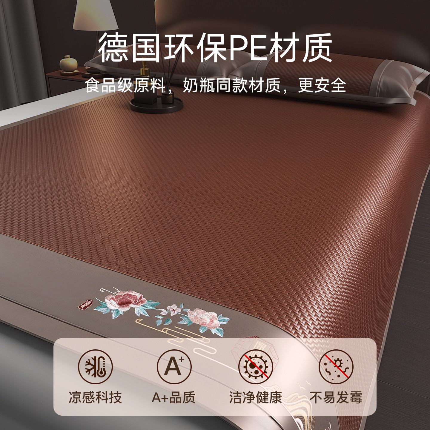 严选德国进口PE环保藤席高端凉席新款加厚夏季席子可水洗直筒款