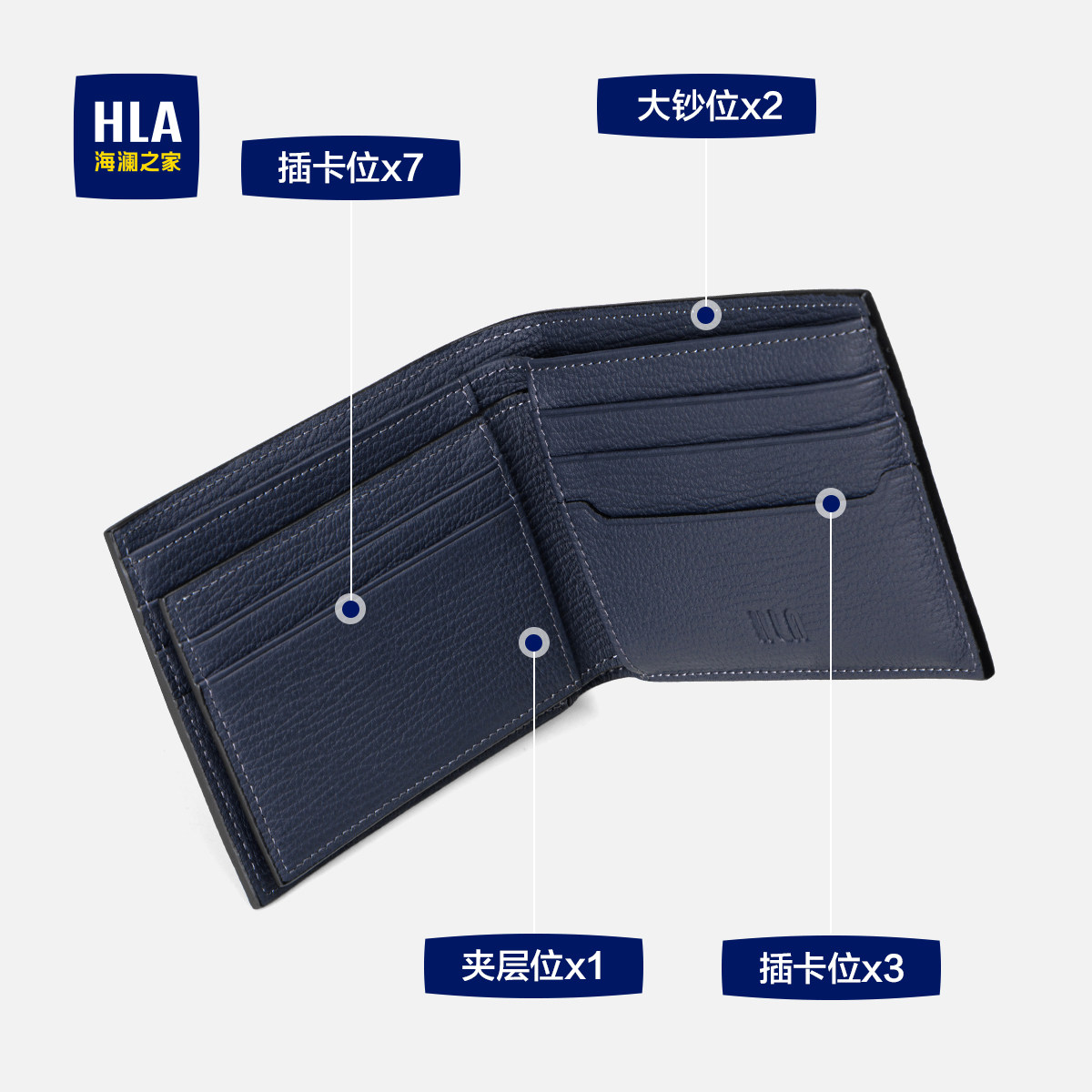 HLA/海澜之家男士钱包2024新款头层牛皮钱夹子生日礼送老公送男友