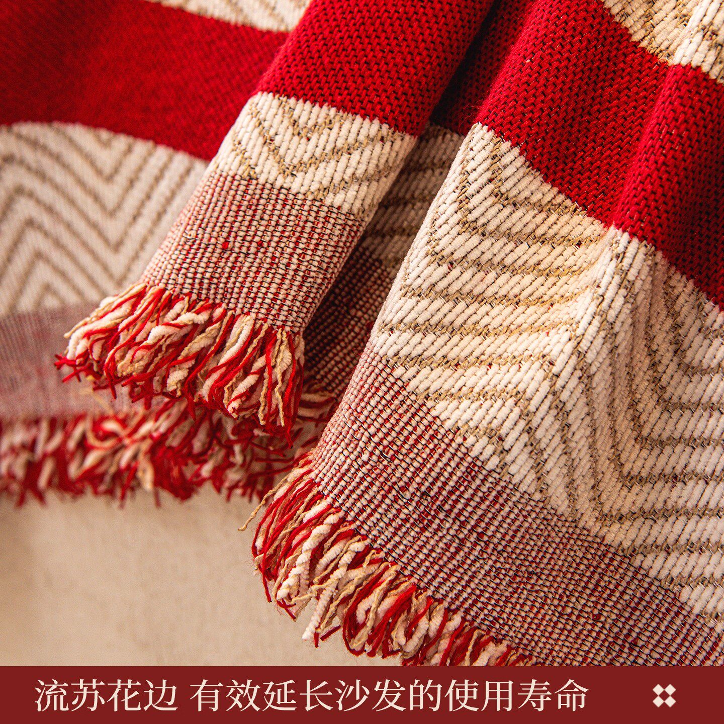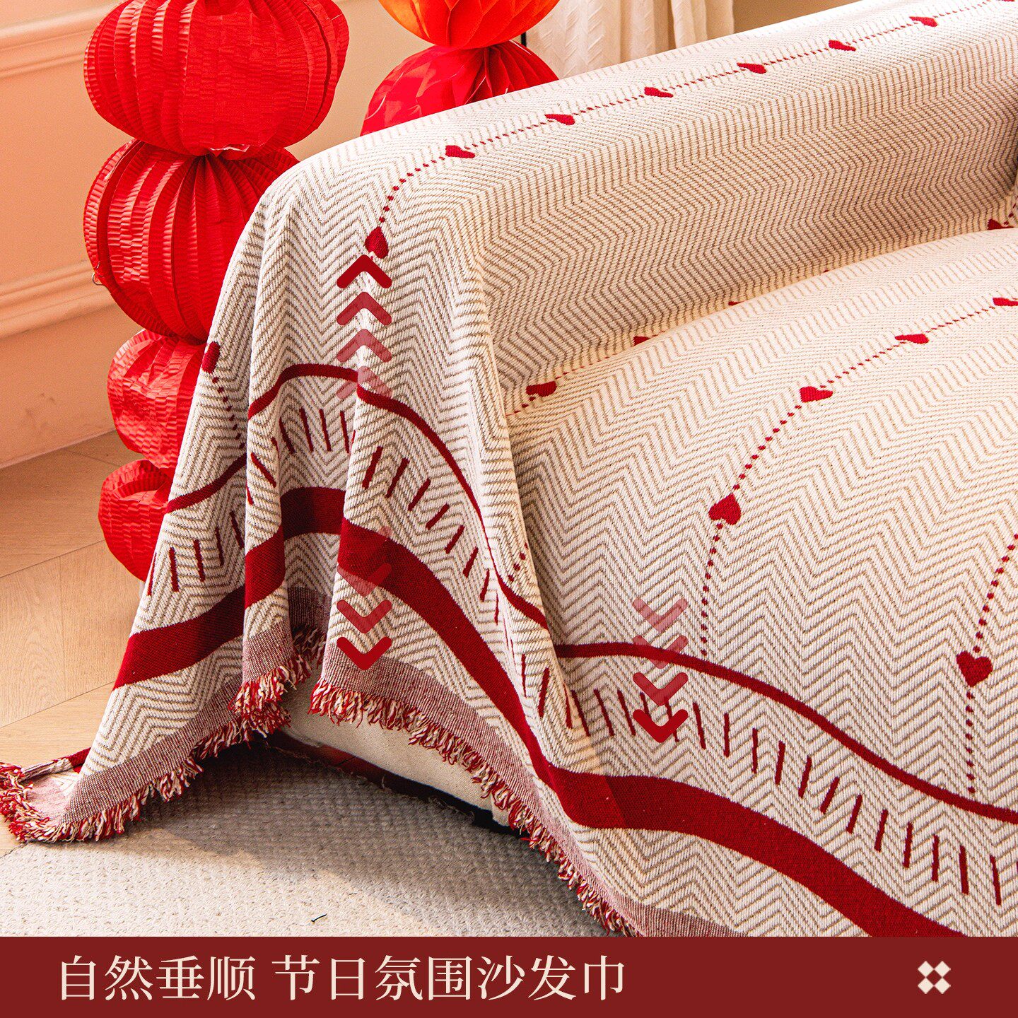 红色喜庆新年氛围感沙发巾盖布2025新款四季通用防猫抓沙发套罩毯