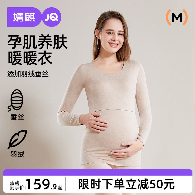 婧麒羽绒蚕丝孕妇秋衣秋裤套装哺乳睡衣冬保暖内衣产后待产月子服
