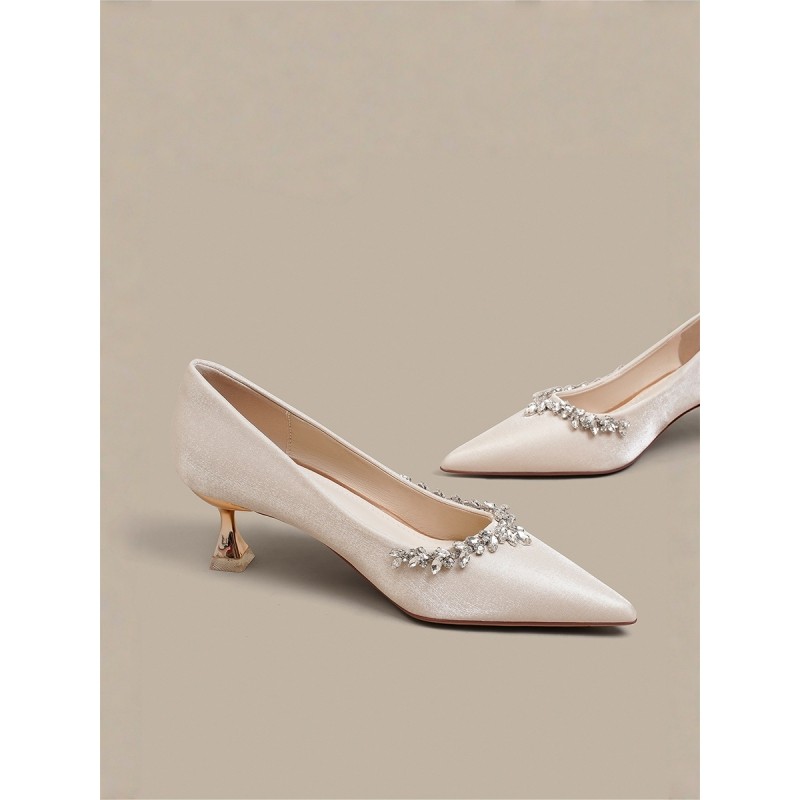 婚鞋女2024年新款主婚纱新娘鞋亮片香槟色水晶鞋尖头细跟高跟鞋女