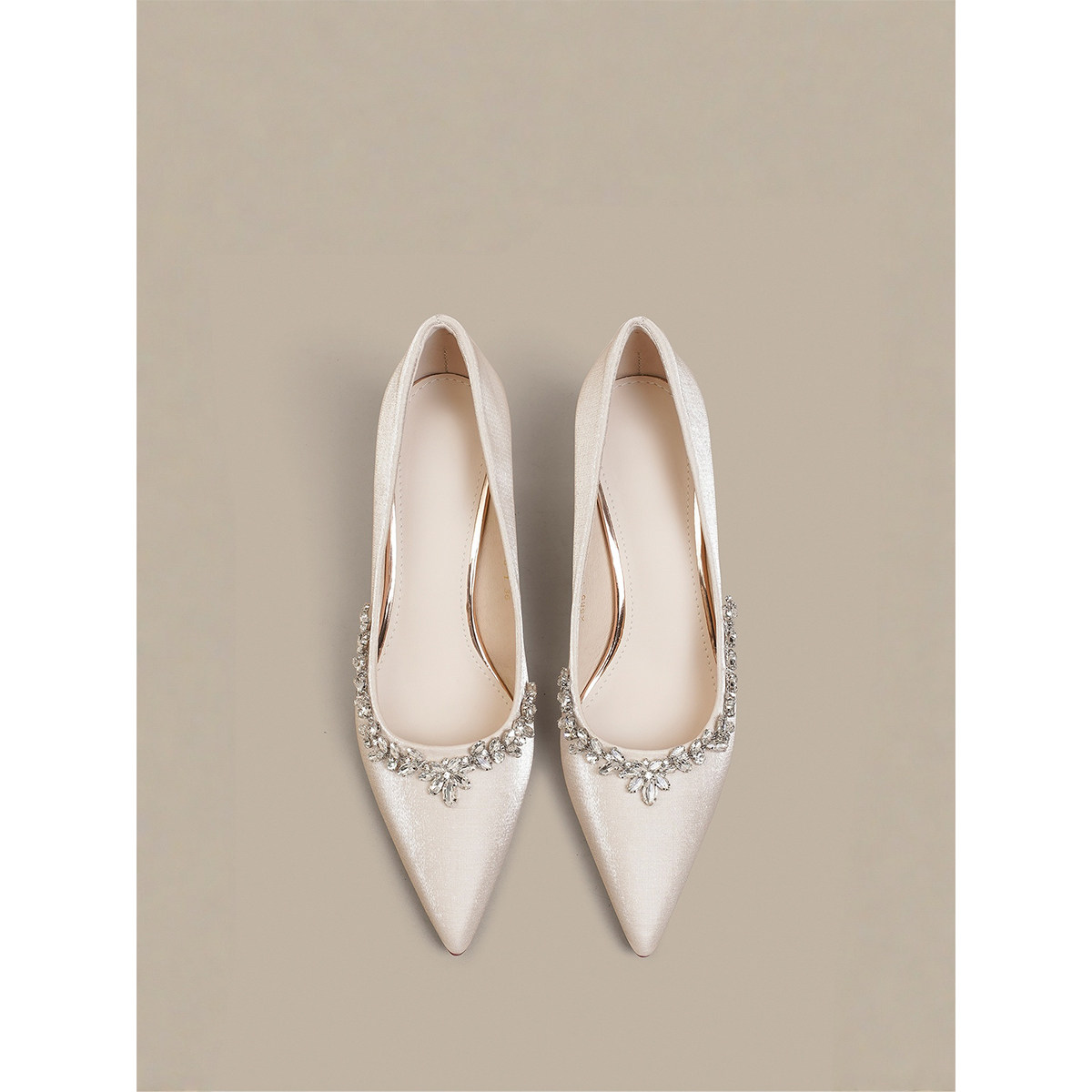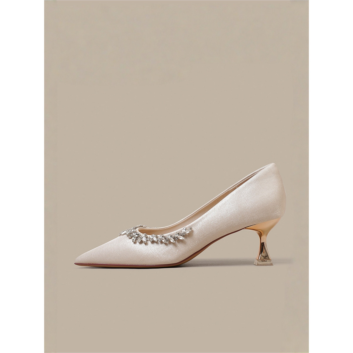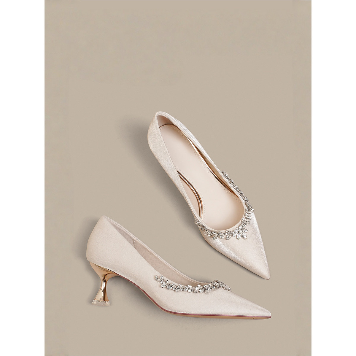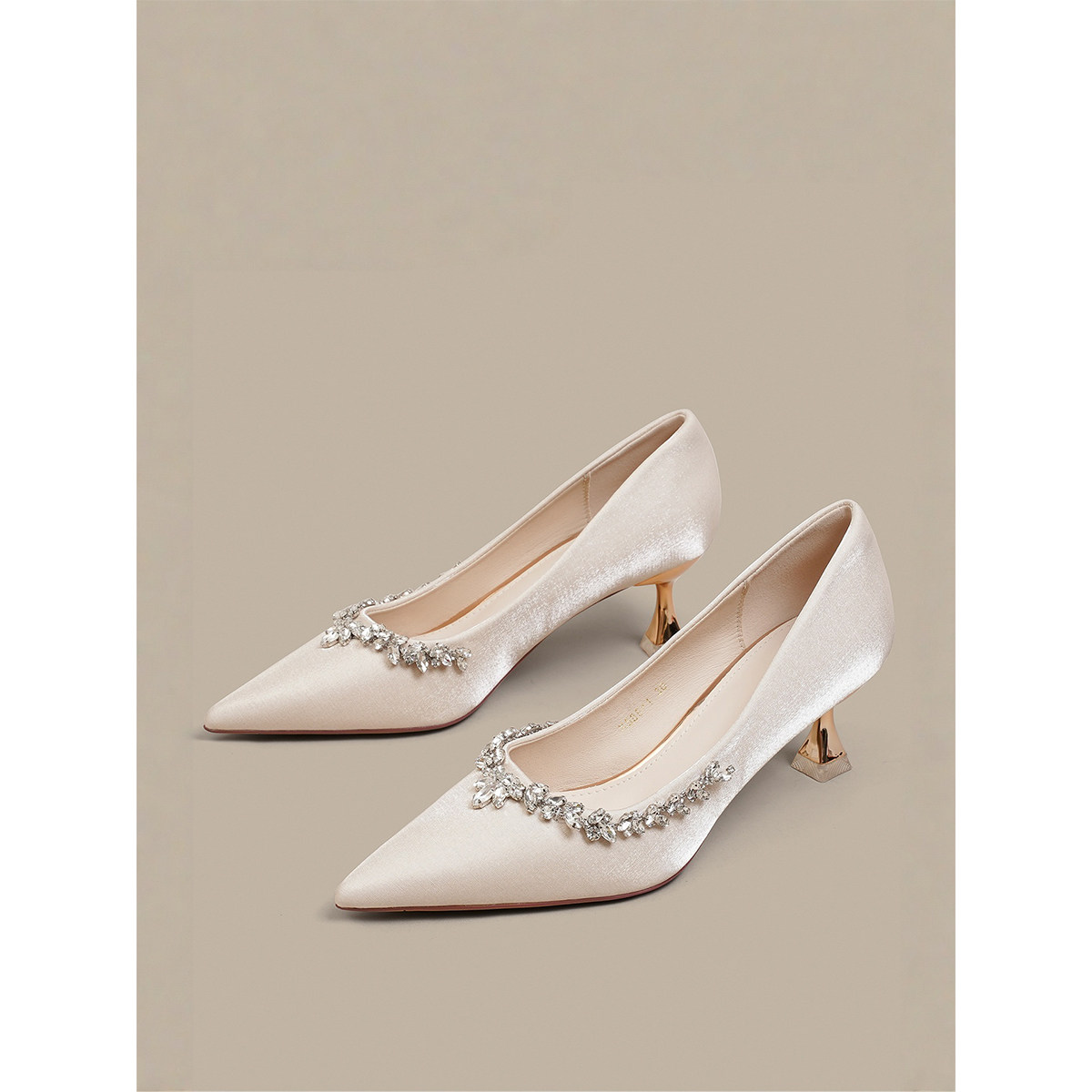 主纱婚鞋女禾秀婚纱两穿新娘鞋法式绸缎水钻气质高跟鞋日常水晶鞋