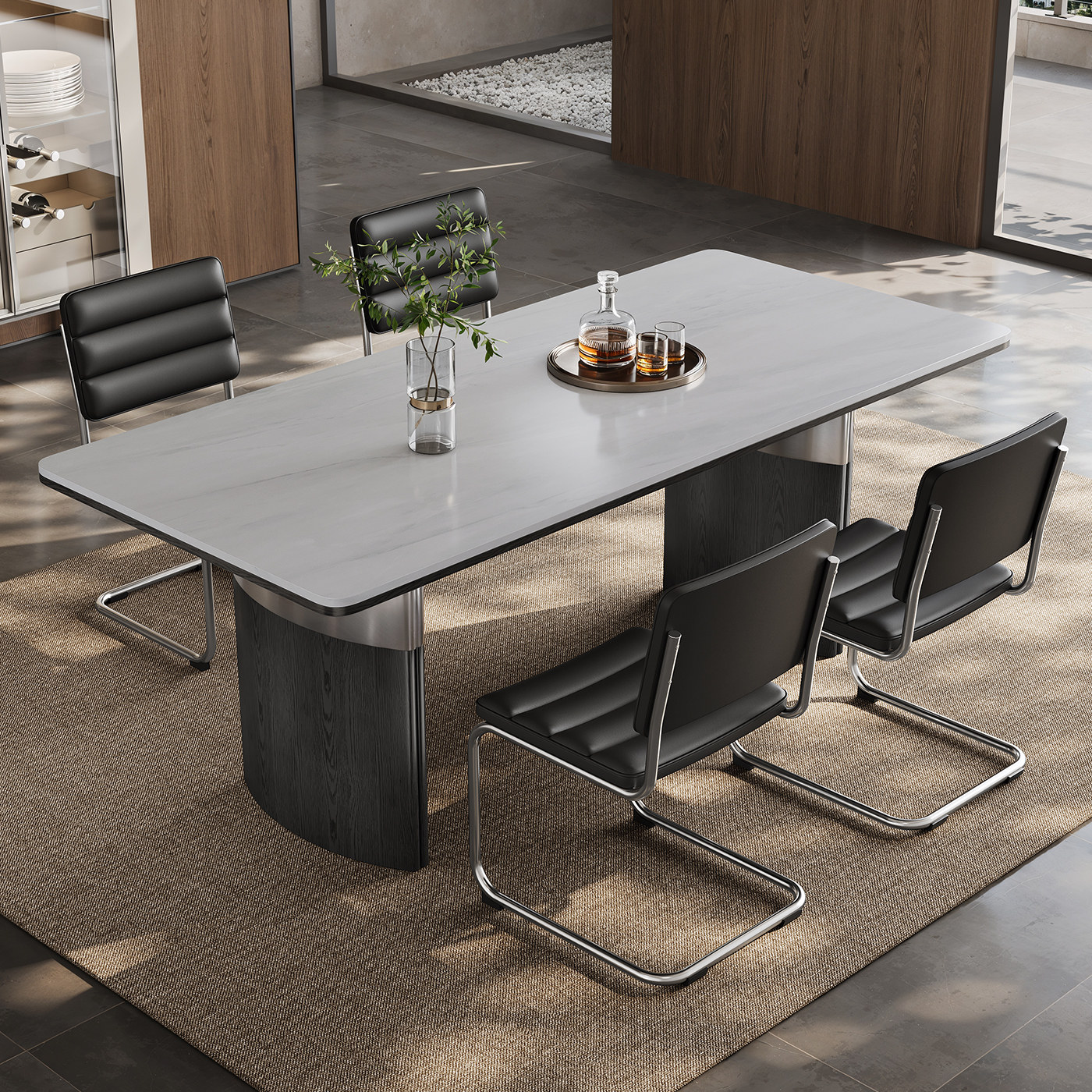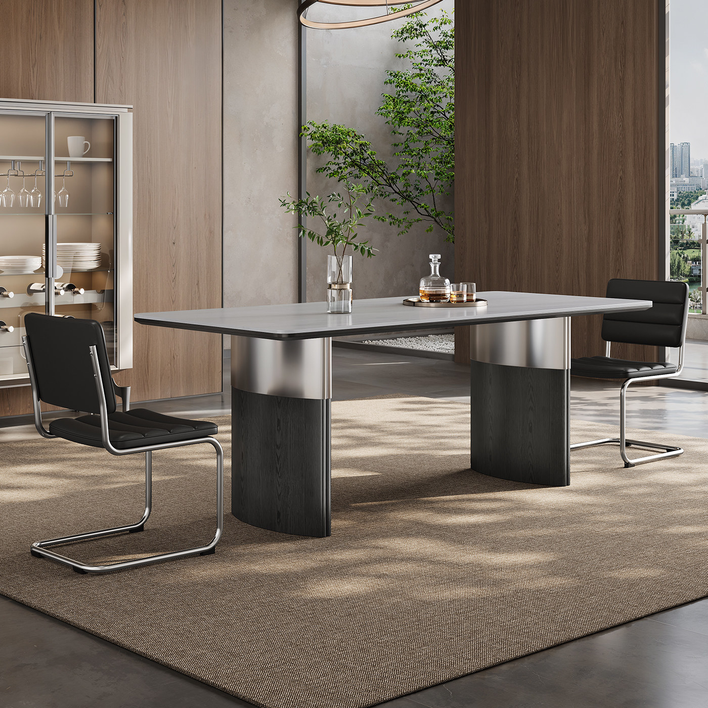 实木餐桌家用小户型2025新款意式轻奢高端长方形包豪斯微晶石餐桌
