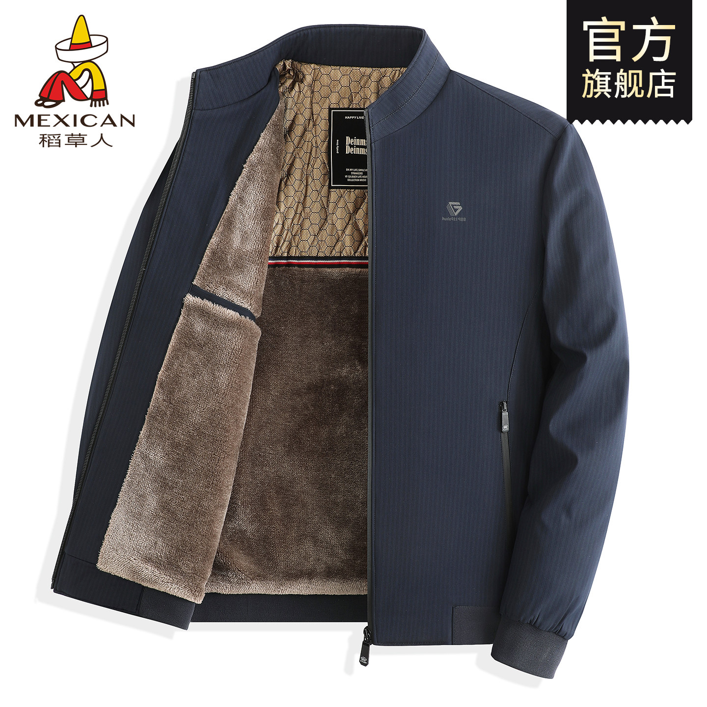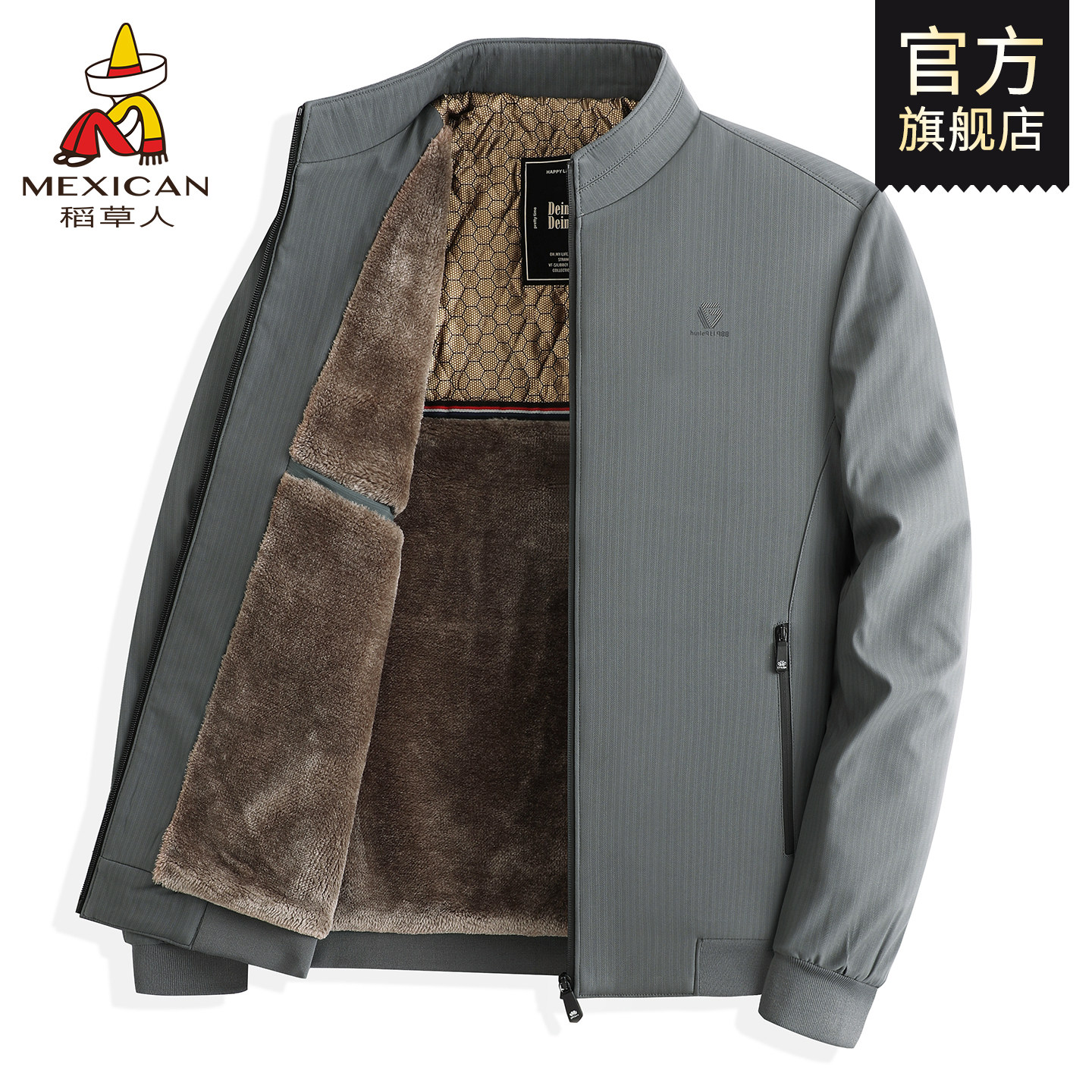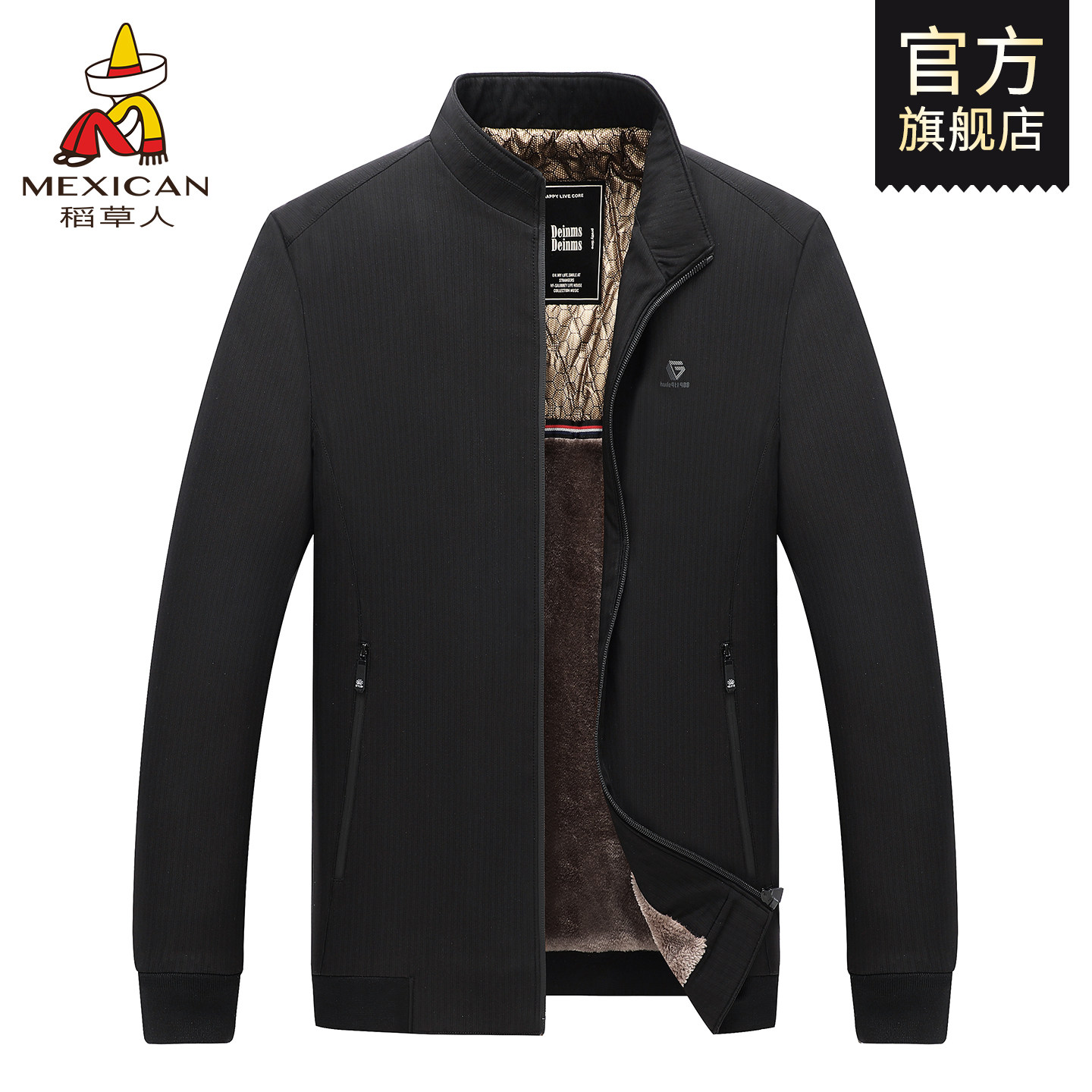 稻草人中年爸爸秋冬装外套加厚夹克立领冬季保暖棉衣茄克男装J