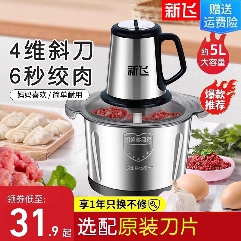 新飞家用绞肉机全自动大容量辅食机多功能电动小型料理机和面搅拌